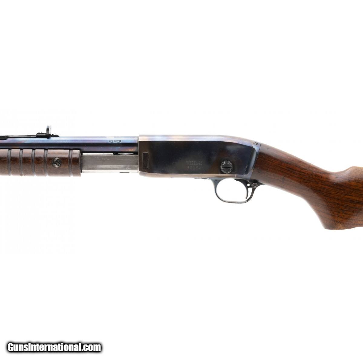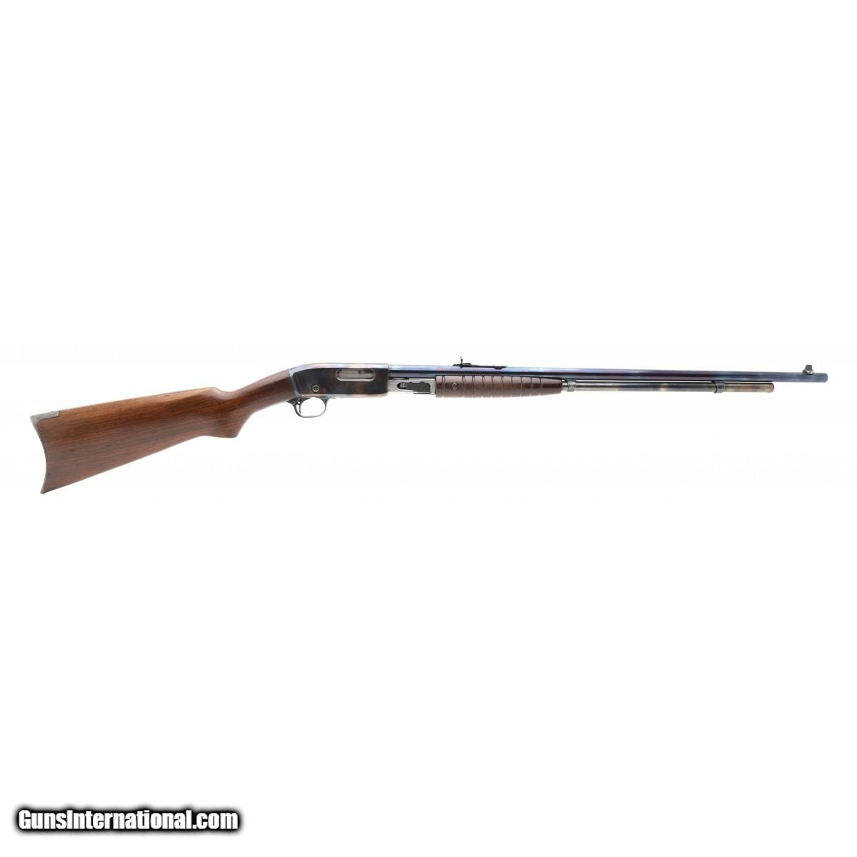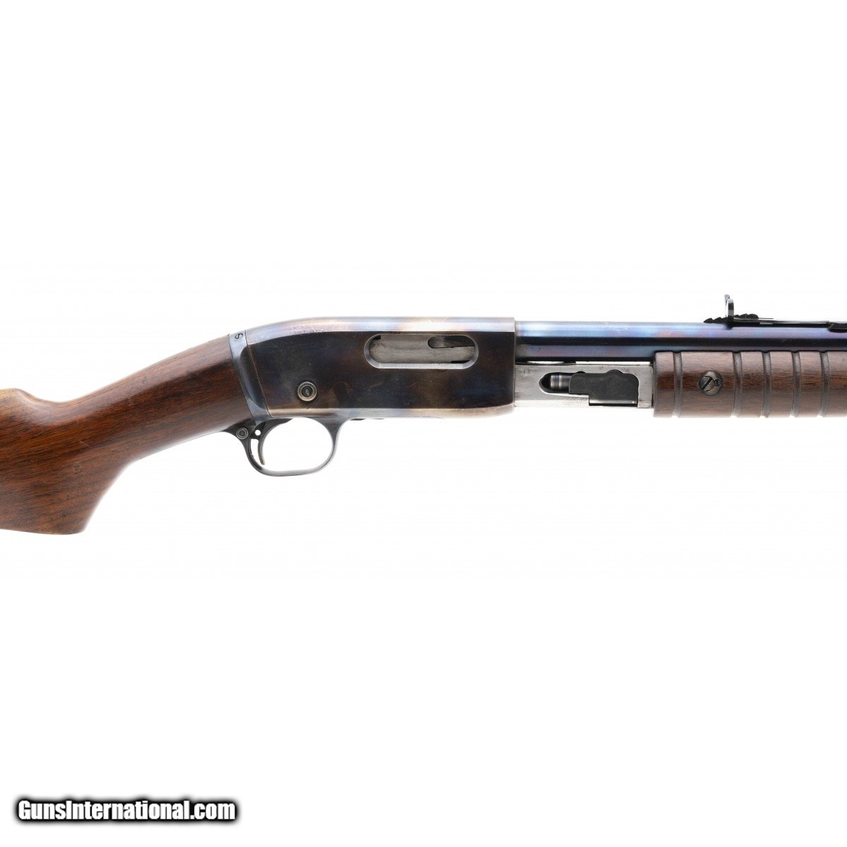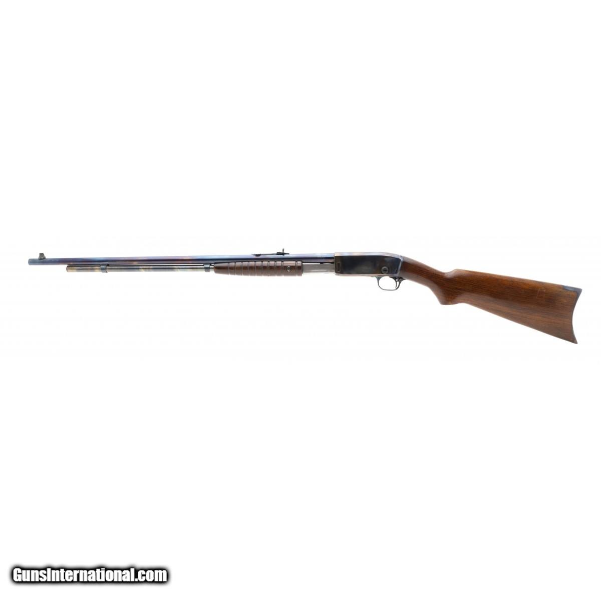 Slide-action rifle with 23.5"" barrel. The metal has been case colored. Overall very good condition.
