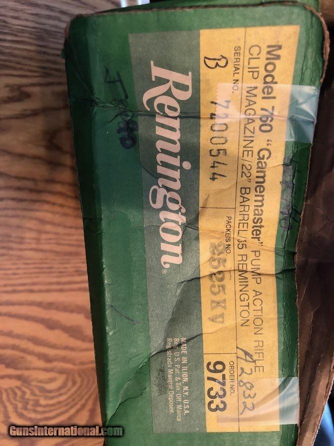 Description: N.I.B. Remington 760/ 35 Remington , I believe born in 1980, Look at the pictures and E-Mail or call me with any Questions. SOLD Rifle Caliber: .35 Remington Manufacturer: Remington Model: 760 Serial Number: B7200544 Barrel Length: 22 Condition: N.I.B. Metal Condition: Shiny Wood Condition: New,Excellent Bore Condition: Shiny |