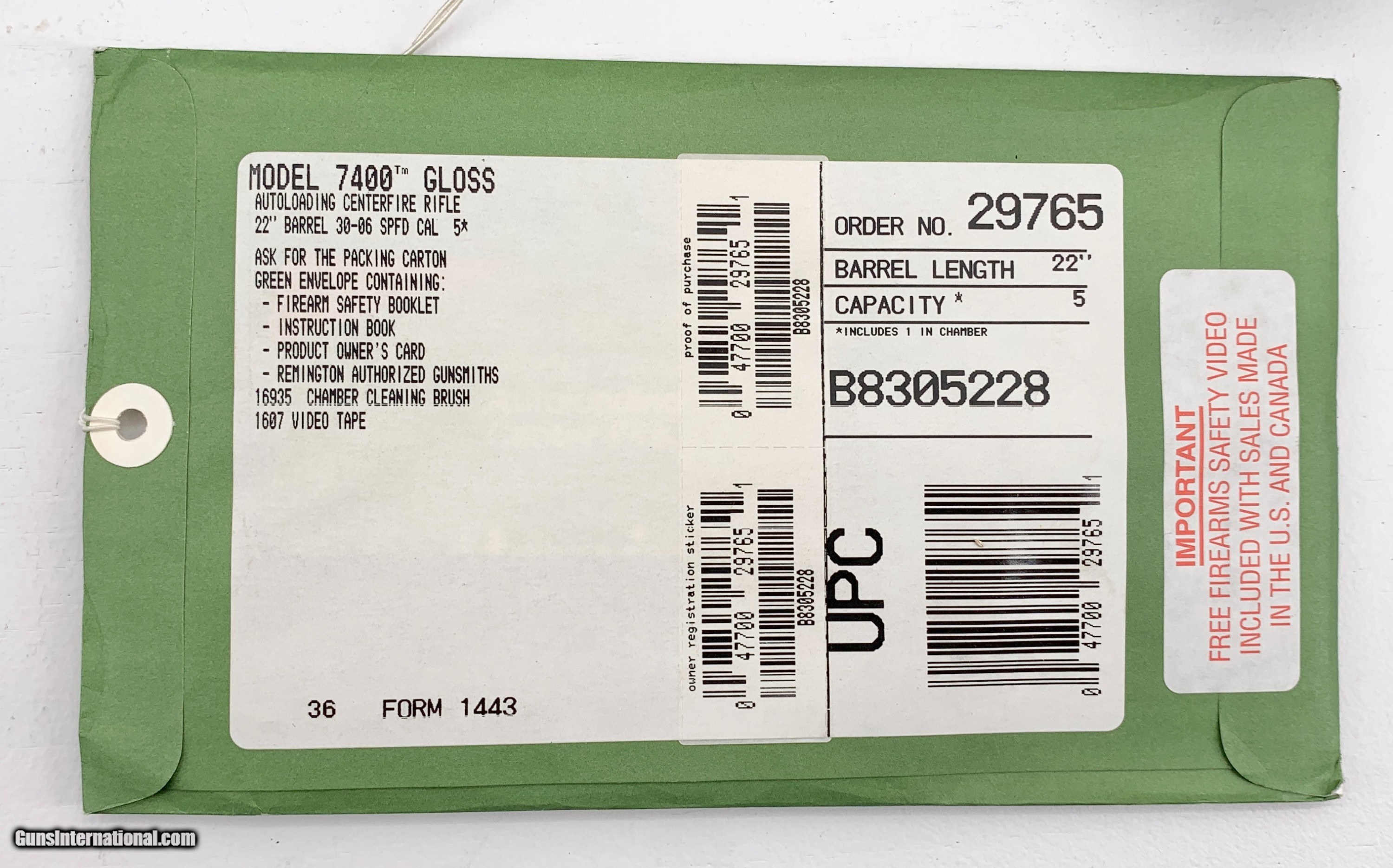 NEW OLD STOCK REMINGTON 7400 SEMI AUTO GLOSS ENHANCED FACTORY ENGRAVED 22" BBL 1996 ORIGINAL BOX & PAPERS .30-06 SPRG ULTRA RARE