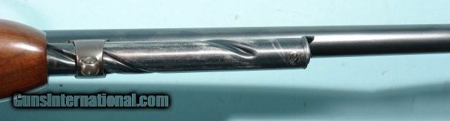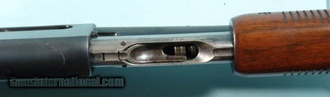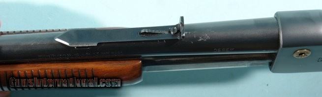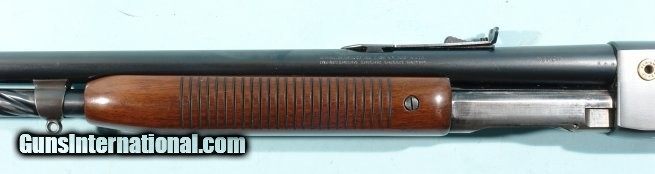 Description: PRE-WAR REMINGTON MODEL 141 GAMEMASTER .35 REM. PUMP TAKEDOWN RIFLE. 24” barrel. All original with tapped for side mount. Excellent plus with 99% blue on barrel and frame. Loading tube assembly with usual blue loss. Stock and slide forend with all the original finish. Original checkered steel factory butt plate and sling swivel eyelets. Mint bore and very tight working order. Nice original example. Great caliber. SOLD Curio/Relic: Yes |