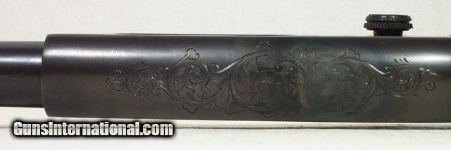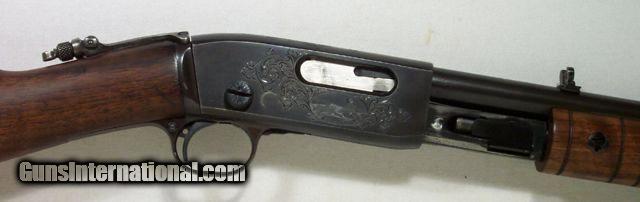 Description: Remington pump action model 25; SN5379; cal. 32 W.C.F. (32-20); Carbine Model with straight stock; 18” bbl.; PERFECT action and bore; made 1923-1935; very professionally engraved; lower tang marked “SHERWOOD ENGRAVED”, refinished when engraved; SOLID, problem-free wood; non-original sights; FFL/C&R required for shipping; All items shipped fully insured Priority Mail- -Hand guns $30 --Long guns $45-- Spurs $30-- Knives, Swords & Sabers $30—Grips $20 (Texas residents please add 6.75% sales tax); return policy: three days inspection from the date the item is received; full refund of shipping both ways ONLY IF THE ITEM IS MISREPRESENTED. Note: International sales only as laws permit. Will ship C&R eligible items to C&R license. Antiques shipped without license to anyone EXCEPT New Jersey and City of New York where a FFL is required. SOLD Curio/Relic: Yes Manufacturer: Remington Model: 25 Serial Number: 5379 |
