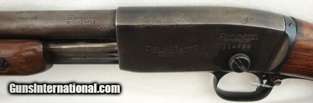 Description: REM, 121 Fieldmaster, .22 S, L, LR, 24" bbl, shiny bore, good rifling, wood stock, plain pistol grip stock, hammerless, vertically adjustable rear sight, with tube magazine. Add 3% for Credit Card Shipping $25.00 SOLD |