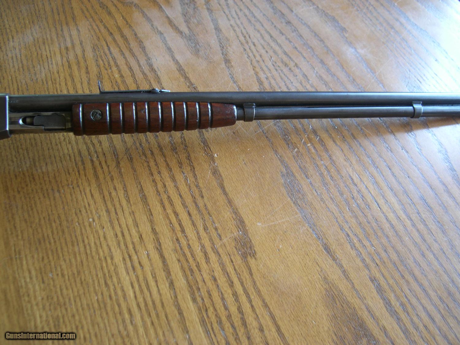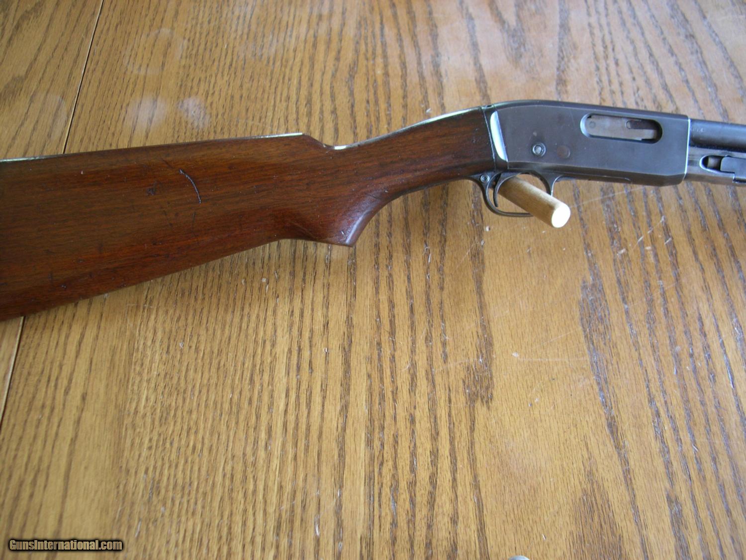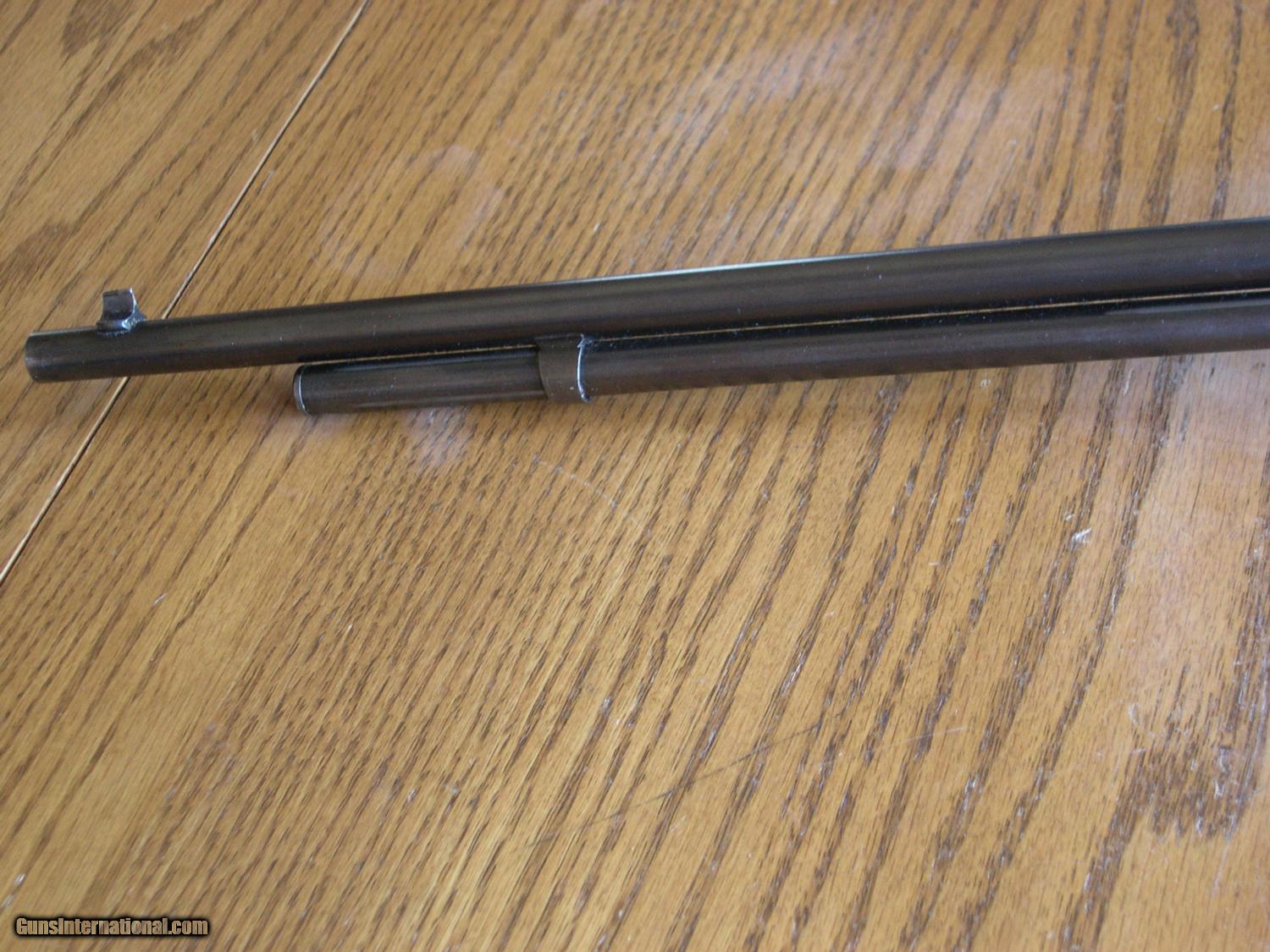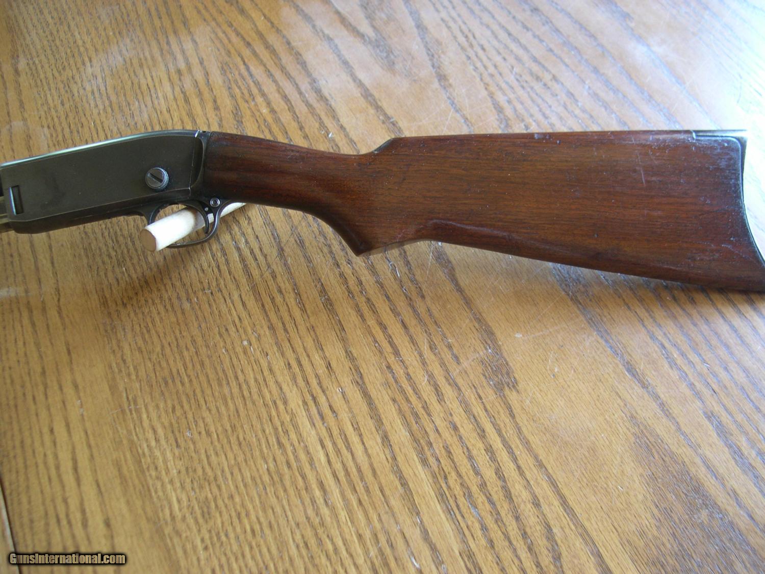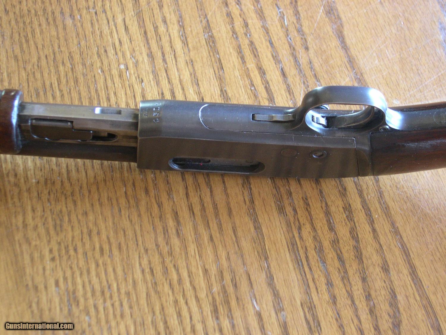 Description: You don't see these every day in this caliber, this in original condition 95%, with Exc Bore, made in the late 20's, wood is EXC with no cracks or dents, 98% original varnish front & rear, one scratch on right side of buttstock(in pic). this rifle carries like a model 12-C 22,but has a 32 caliber round coming out at the end, a really unique rifle for hunting!! SOLD |