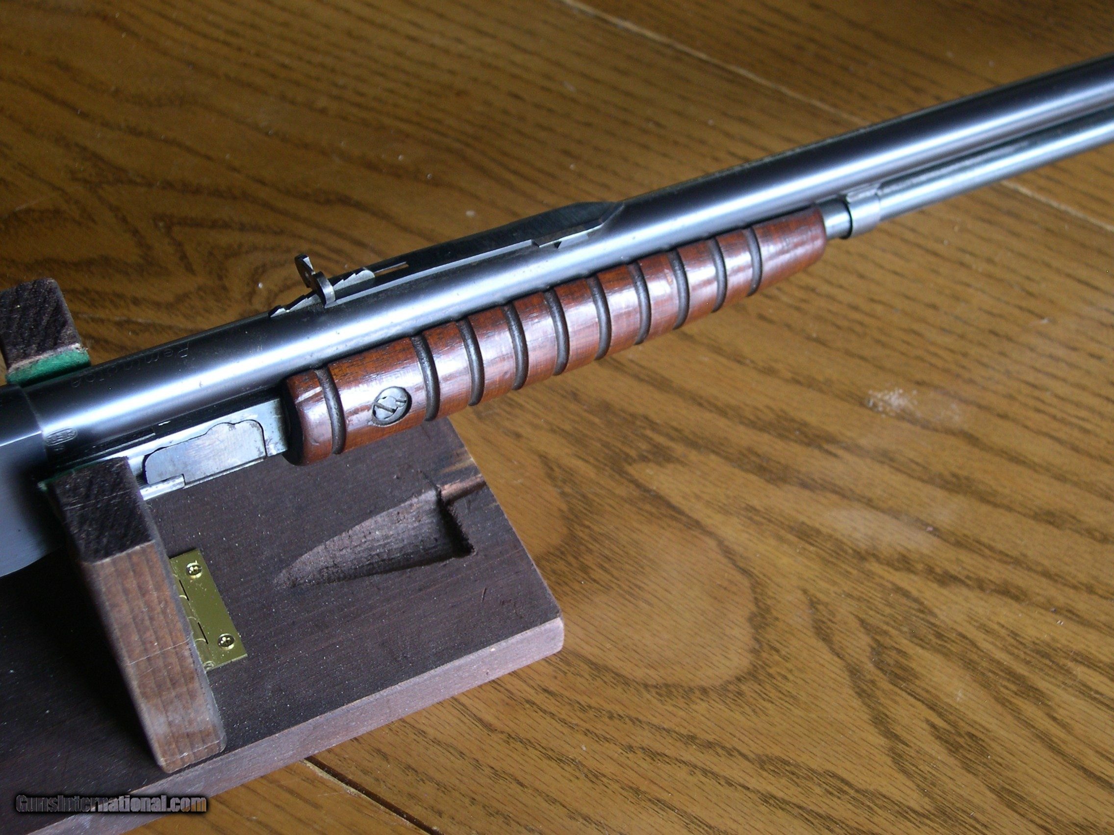 Description: 100% original and 98% Blue & wood finish, very hard to find in this original condition !! 24" Bbl with Exc plus bore, same size as remington rimfire pump but in 32 caliber center fire, hard to find like this one!! Collectable condition !! SOLD |