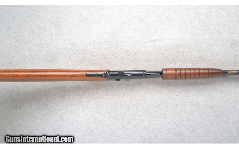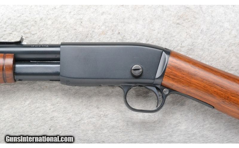 Description: This Remington Model 12-A is a right hand pump action repeating rifle in .22 Short, Long or long Rifle Cal. It has a 22 inch barrel. A blade front sight and an adjustable notch middle sight. The butt stock is a smooth grip walnut straight grip. The forearm is a grooved grip walnut. This gun has been refinished. S/N 539310. .22 Short/Long/Long Rifle SOLD Chambers: Tube Magazine. Metal Condition: Excellent. Has been reblued. Wood Condition: Excellent. Has been refinished. Bore Condition: Very Good. Barrels: 22 inch. Stock Dimensions: LOP 13 inches. Fore End: Grooved grip walnut. Butt Pad: Remington checkered black plate. Weight: 4 lb. 8 oz. Sights: Blade front. Adjustable notch middle. Item Location: Richfield, WI |