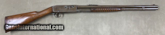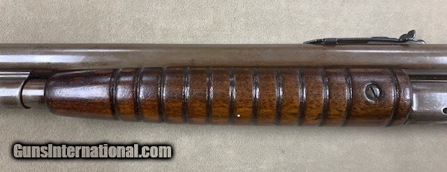 Description: An original Remington Model 14 1/2 Pump Rifle in caliber .38-40. Rifle is totally original, complete, and in perfect working order with the scarce so called "fingernail safety". Finish has turned to a light brown patina. Wood is original, solid, and with lots of original finish including the original buttplate. Chamber is excellent and bore is about very good plus borderline on excellent - should make a nice shooter. These are getting quite hard to find in any condition. SOLD Curio/Relic: Yes Rifle Caliber: .38-40 Winchester |