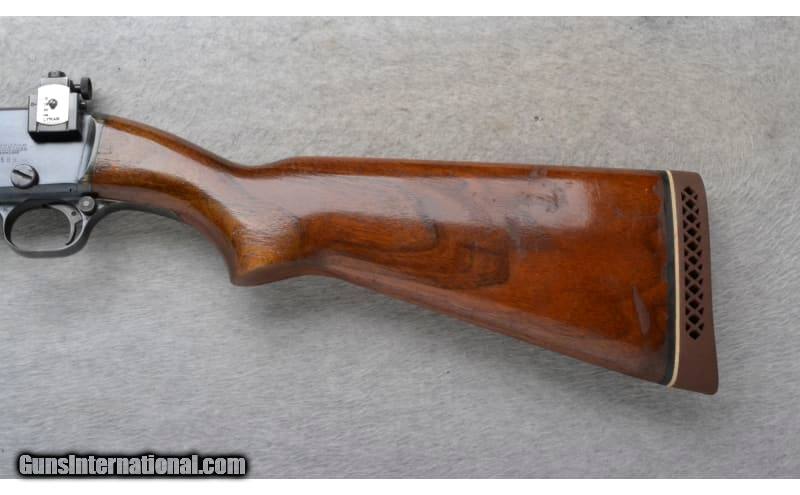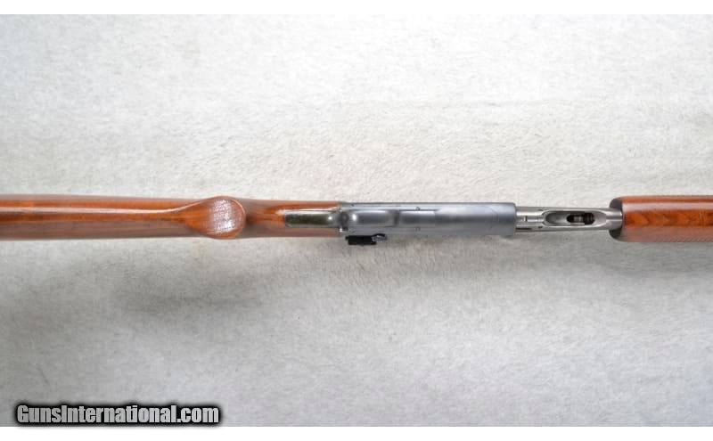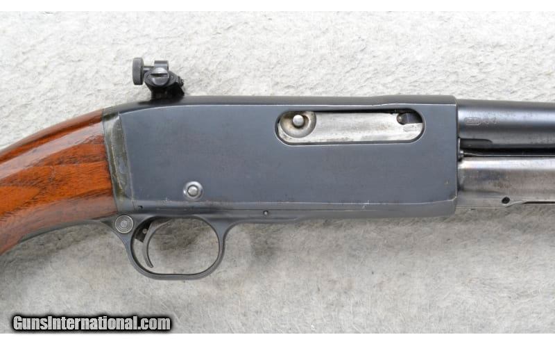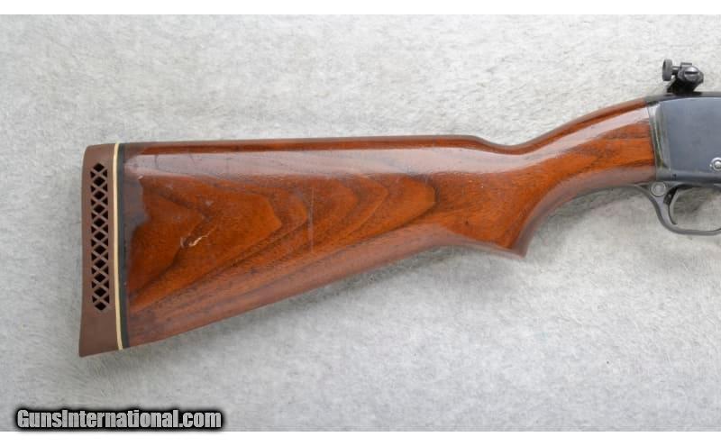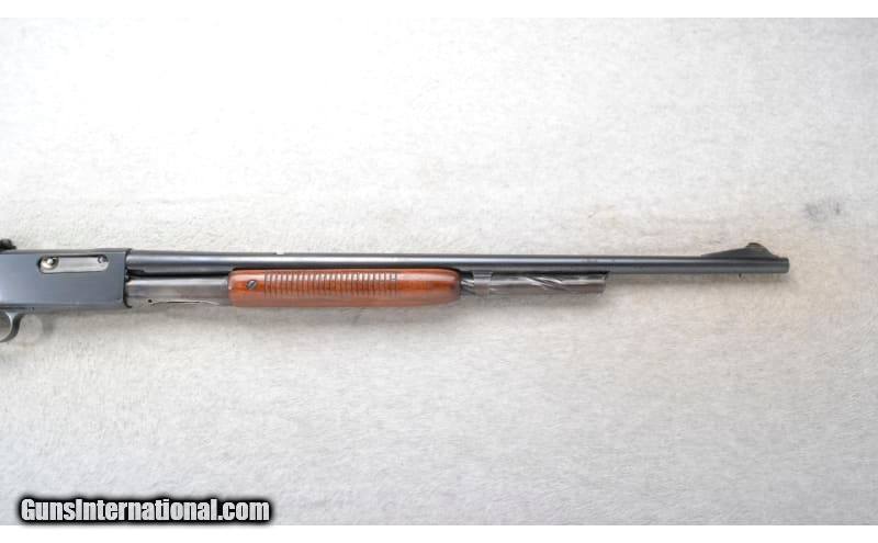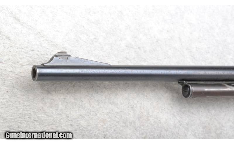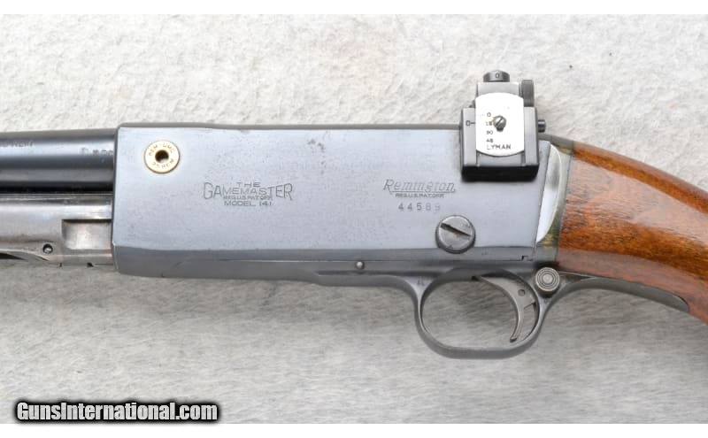 Description: This Remington Model 141 is a right hand pump action rifle in .35 Rem. Cal. It has a 24 inch barrel. A blade front sight and a Lyman adjustable aperture rear sight. The butt stock is a smooth grip walnut pistol grip. The forearm is a grooved grip walnut. Serial Number 44589 (1945). .35 Remington SOLD Chambers: Tube Magazine. Metal Condition: Fair. Freckling and light handling marks. Wood Condition: Fair. Handling and use marks. Bore Condition: Very Good. Barrels: 24 inch. Stock Dimensions: LOP 13 5/8 inches. Fore End: Grooved grip walnut. Butt Pad: Pachmayr White Line rubber recoil pad. Weight: 7 lb. 10 oz. Sights: Raised blade front. Lyman adjustable aperture rear. Item Location: Richfield, WI |