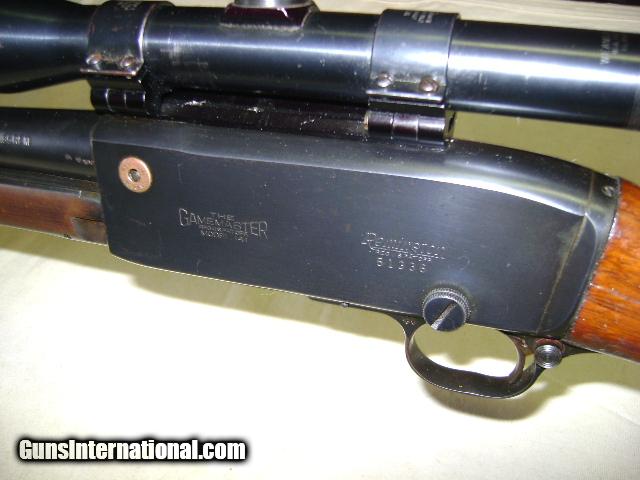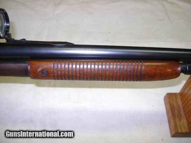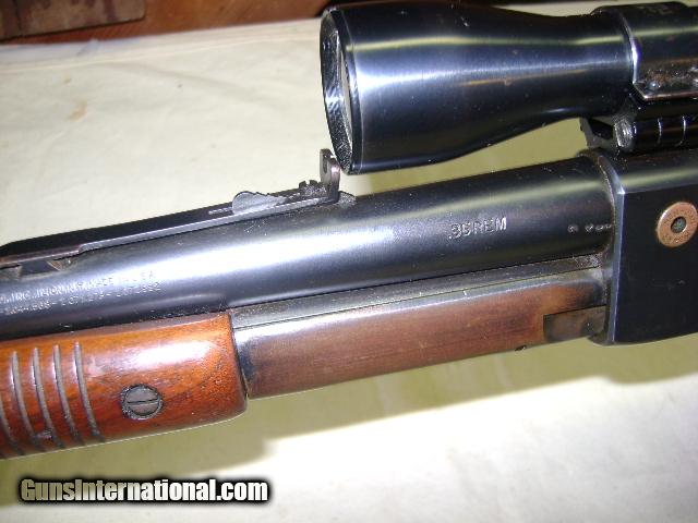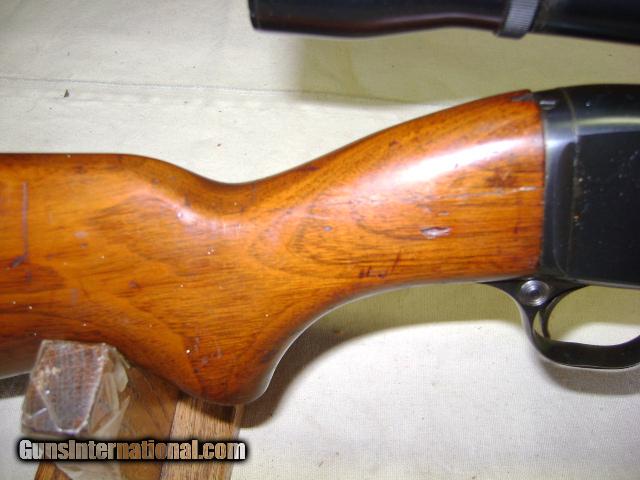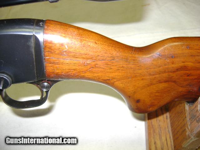 Description: Ser no 51xxx 90% blue, Wood shows handling marks has tight crack at pistol grip on both sides and has chip out of toe of buttstock, Good Bore, comes with Weaver K-4 scope with flip off mounts, Buyer pays 35.00 shipping Pa residents add 6% sales tax SOLD |