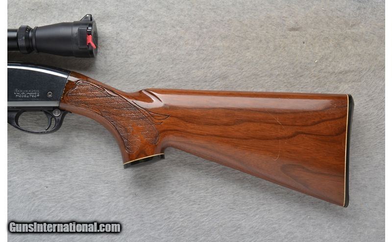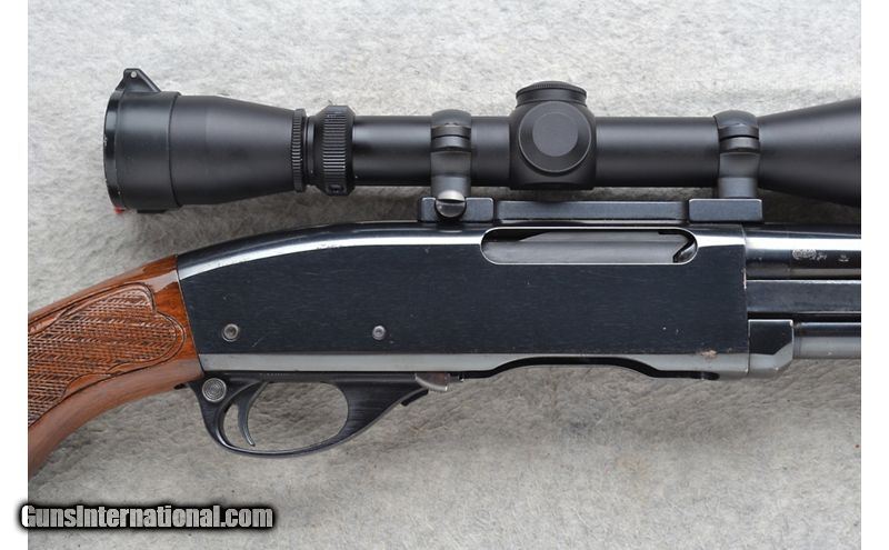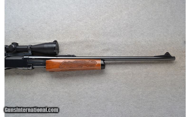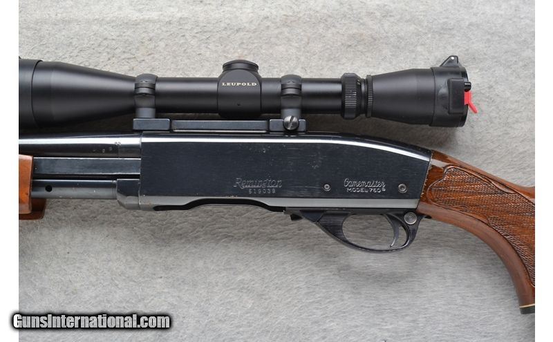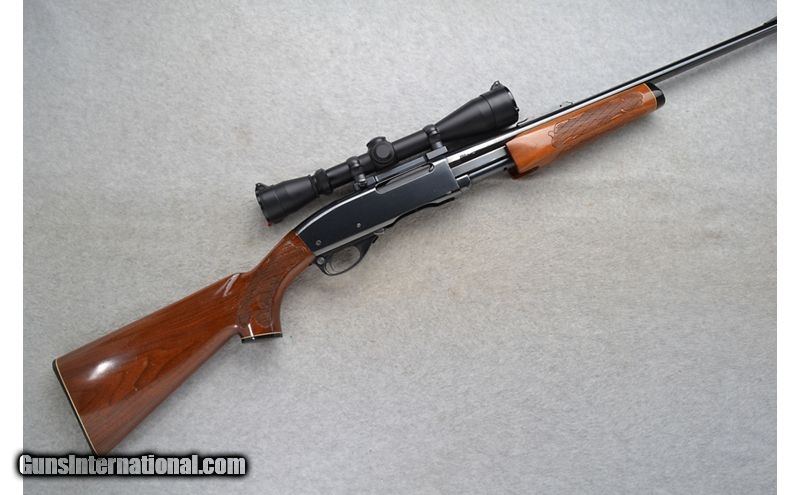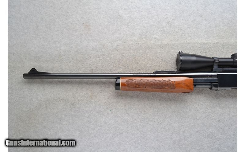 Description: This Remington Model 760 is a right hand pump action rifle in .30-06 Sprg. Cal. It has a 22 inch barrel. A raised blade front sight. Middle sight is missing. It is outfitted with a Leupold 3x9 Scope. The butt stock is a checkered grip walnut pistol grip with a black cap. The forearm is a checkered grip walnut with a black tip. .30-06 Springfield SOLD Chambers: Right hand pump action - 4 round detachable magazine. Metal Condition: Very good. Very minor freckling spots and minor handling marks. Wood Condition: Good. Many light handling marks. Bore Condition: Excellent. Barrels: 22 inch. Stock Dimensions: LOP 13 1/4 inches. Fore End: Checkered grip walnut with a black tip. Butt Pad: Checkered black plate. Weight: 7 Lb. 14 Oz. Sights: Raised blade front. Missing middle sight. Leupold 3x9 Scope. Item Location: Richfield, WI |
