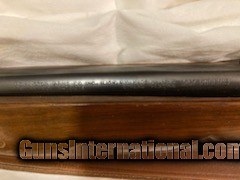 Description: Remington 760 Gamemaster chambered in .257 Roberts. Barrel is stamped OA on left side one inch in front of the receiver. From all information I could gather this signifies manufacture in July, 1954. Barrel is in excellent condition. Bluing shows some wear from riding in a truck rack. Stock has two knicks but otherwise in very good condition. Metal buttplate. Checkering on slide and stock show little to no wear. Stith solid base scope mount and rings. One magazine stamped .257 R'b'ts. and leather military style sling. SOLD Curio/Relic: Yes Manufacturer: Remington Model: 760 Gamemaster Serial Number: 215077 Action: Pump |
