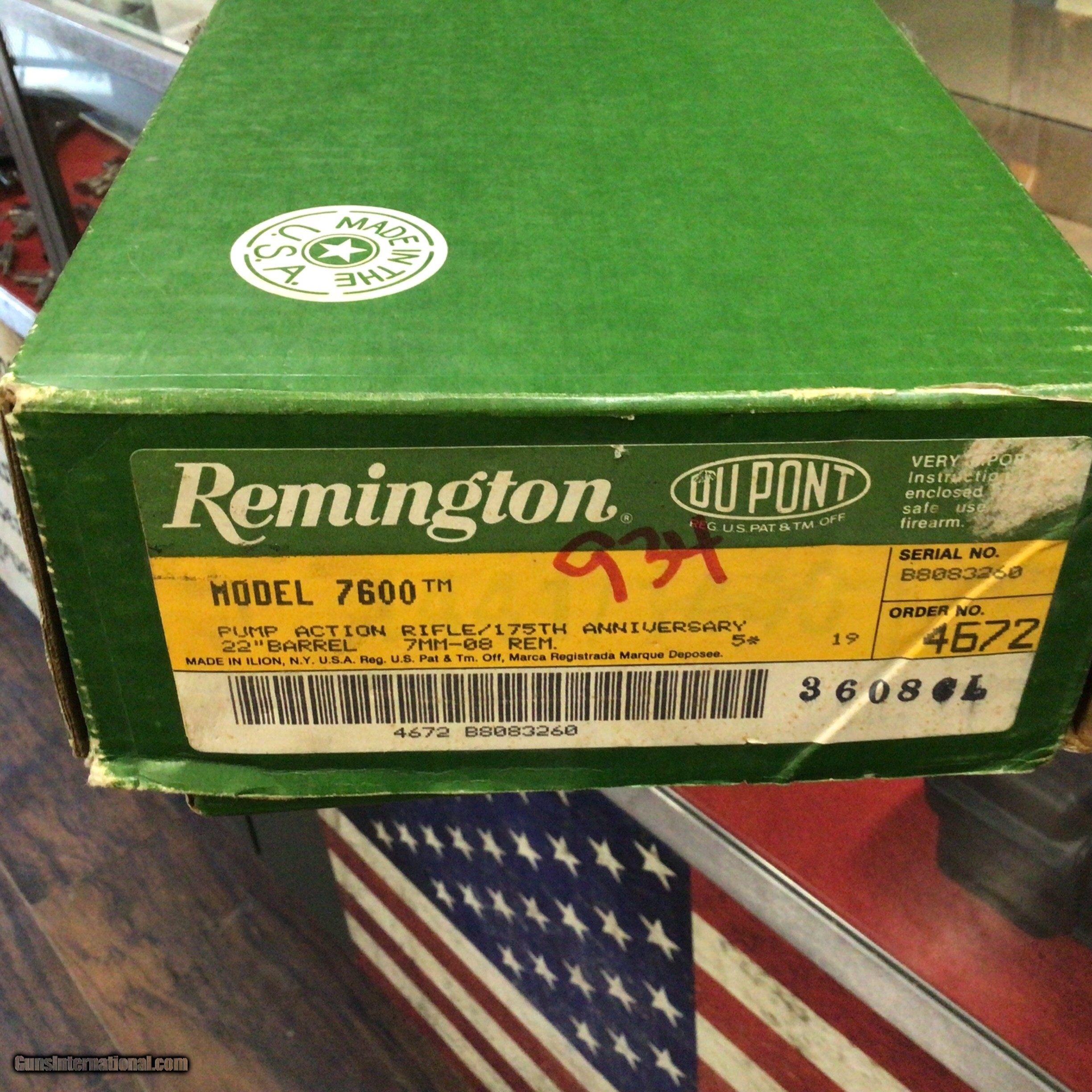Description: For sale we have a Remington 7600 175th Anniversary Edition in 7MM-08. It's new, unfired, in the box. If you need more pictures or info call 412-554-7891. SOLD |