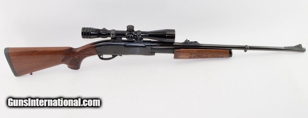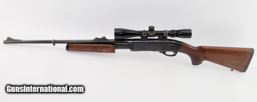 Description: Remington 7600 .30-06, 22" bbl, bright shiny bore, good rifling, blued finish, Redfield 3-9X rifle scope, checkered Walnut grip stock - forearm, 13 5/8" LOP, sling studs, black KICK EEZ recoil pad, and one 4 round magazine. Add 3% for Credit Card Shipping $35.00 SOLD |