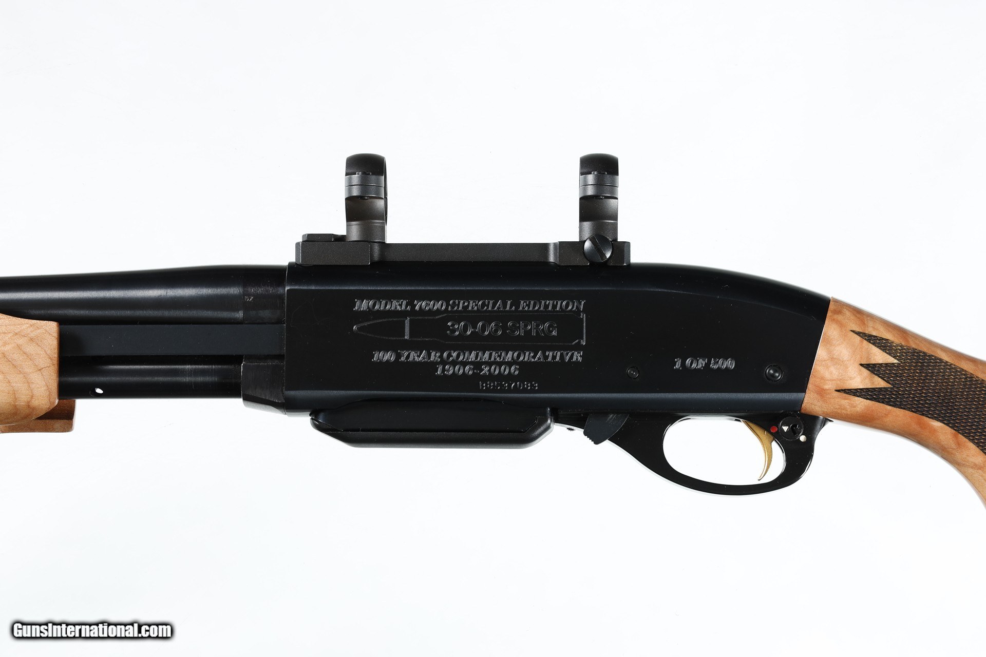 Description: 100th Year Commemorative 1 of 500 1906-2006 .30-06 Springfield 1 of 500 with maple stock and forend. Excellent plus overall condition with a few scuffs on right side of receiver. • Free Shipping, No Credit Card Fees. • Lay-a-way available for this firearm. • 1/3 Down, a 1/3 in 30 Days 1/3 in 60 Days. SOLD Manufacturer: Remington Model: 7600 Serial Number: B8537063 Barrel Length: 22 |