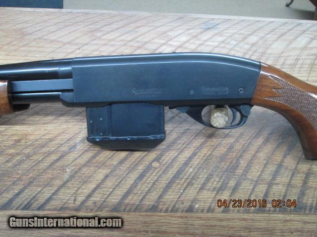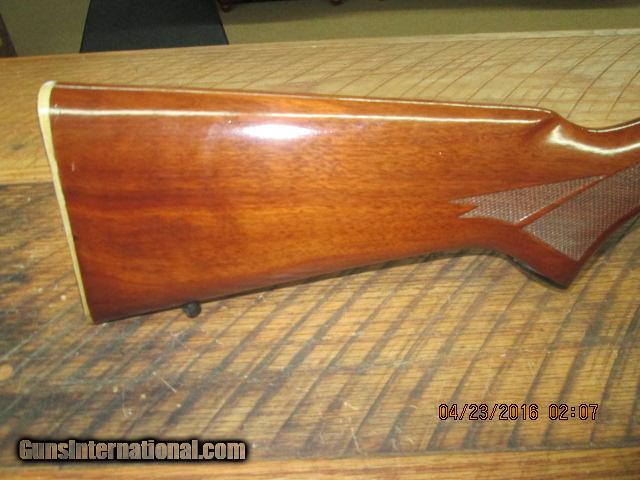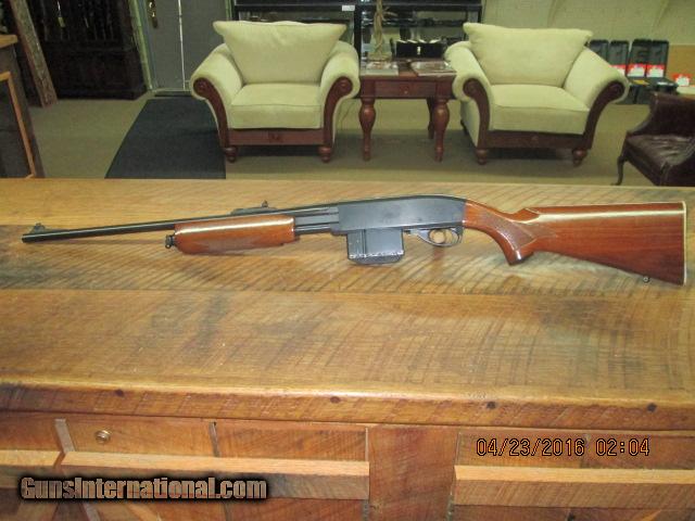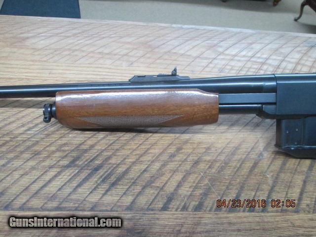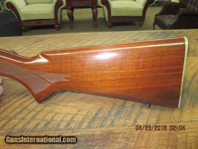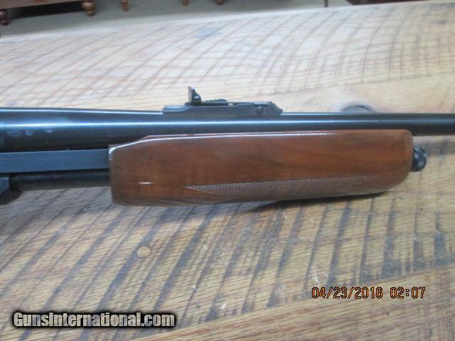 Description: REMINGTON DELUXE MODEL 760 GAMEMASTER (1967) 270 WIN. PUMP CARBINE,22" BARREL WITH POSSIBLY UNFIRED BORE,ORIGINAL FACTORY OPEN SIGHTS AND FACTORY DRILLED AND TAPPED FOR SCOPE MOUNT.DELUXE CHECKERED WALNUT STOCKS IN LIKE NEW CONDITION,WITH SLING STUDS,RUNNING DEER PISTOL GRIP CAP AND FACTORY CHECKERED ALUMINUM BUTT PLATE.LIKE NEW ORIGINAL METAL BLUEES WITH A 10 ROUND MAGAZINE.SOMEONE INSTALLED A LEFT HAND SAFETY.GUN LOOKS LIKE NEW BUT NO BOX. MFG. 1967. 659.00 PLUS 40.00 SHIPPING MONEY ORDER FOR PAYMENT ONLY. CALL DANNY AT 828=243=6269. GOD BLESS! SOLD |