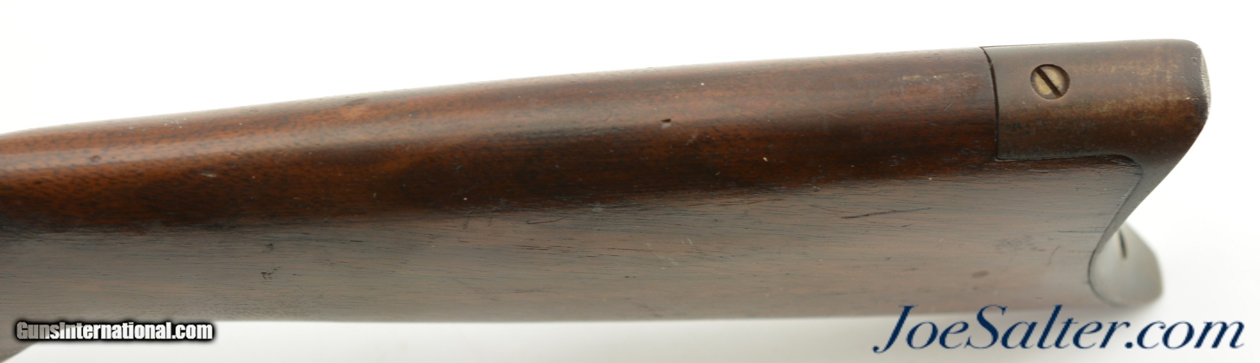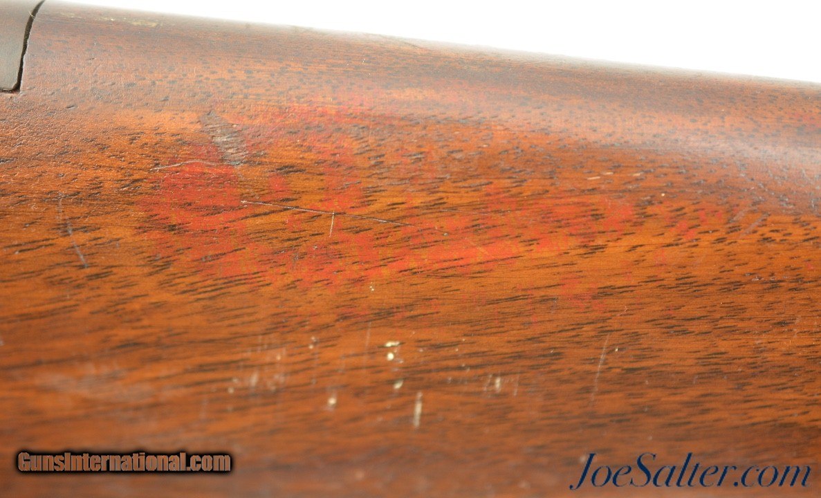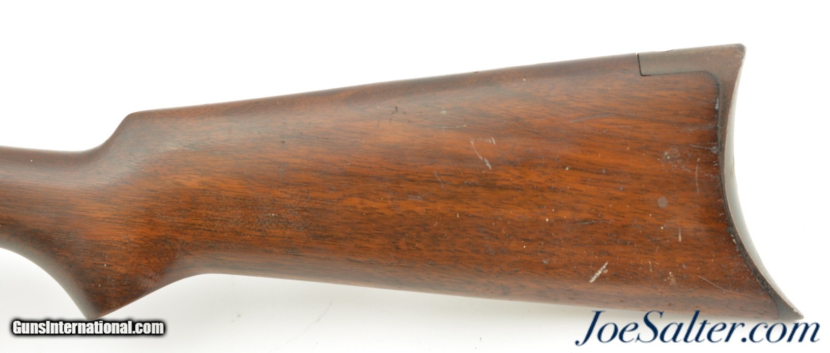 Description: Serial #821919, .22 S,L,LR, 24 inch octagon barrel with a bright, excellent bore. This is the Model 12C slide action, take down rifle manufactured by Remington in 1934. In very fine overall condition the barrel and frame retain about 75-80% of the original blue finish thinning on the receiver with several spots on the barrel of loss having scattered freckling and light scratches and use marks. The trigger shows original case-hardened colors. The stock and forearm are solid with numerous tiny use marks, scratches and small contusions having what appears to be the remnants of red paint for perhaps a Shooting Gallery marking on the right side of the stock. It is sighted with the standard adjustable rear and bead front sights. It functions properly with a smooth slide action. A great Depression era Model 12C. FFL or C&R SOLD Curio/Relic: Yes |