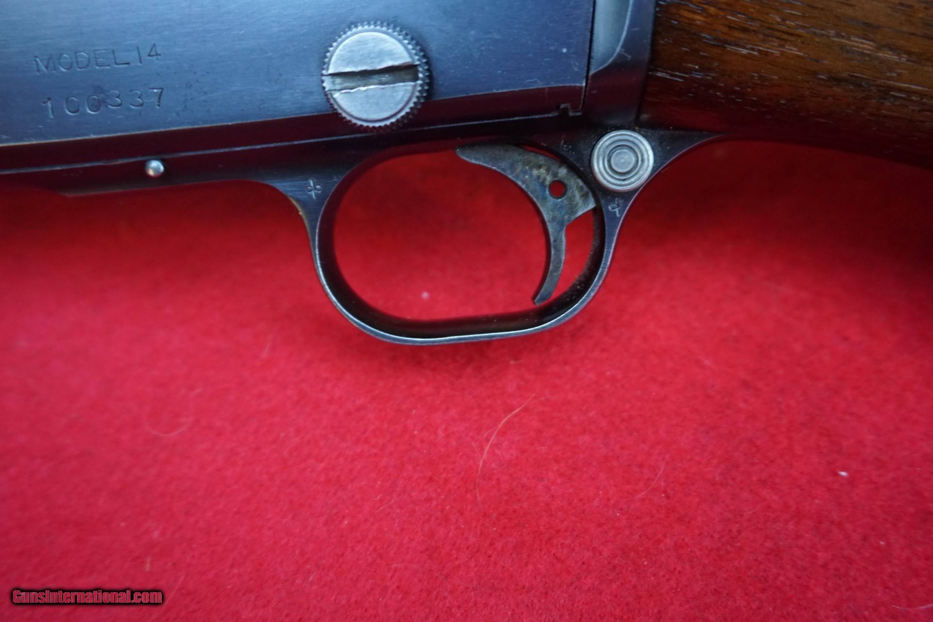 Description: This is a very nice Classic North woods deer gun, Model 14 that is all original , original front and rear sights, original blue and varnish, wood is not cracked, bore is bright and shiny & works perfect and is very accurate , its a straight , clean gun that is in super shape and has not been messed with - hard to find in this model, comes with a box of factory ammo, $695.00 +25 ship SOLD Curio/Relic: Yes Rifle Caliber: .30 Remington Manufacturer: Remington Model: 14 Condition: Excellent |