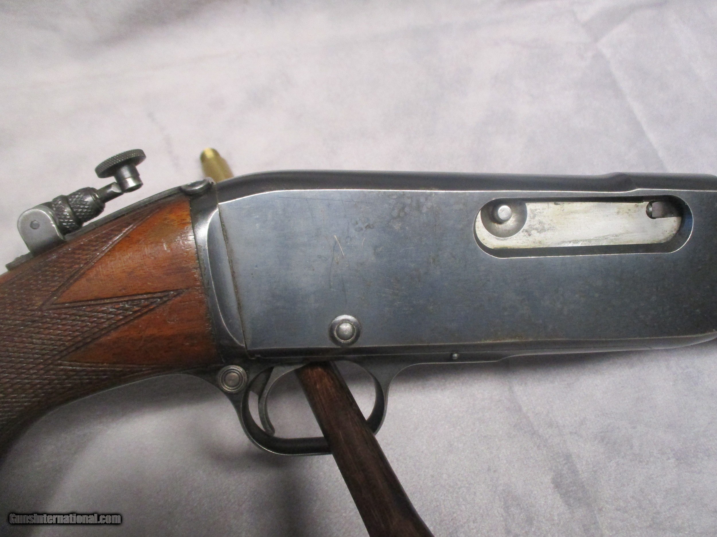 Description: The Remington Model 14 was for many years the standard American pump-action hunting rifle. It was originally designed in 1908 by John Pederson, the famed inventor of the Pederson device for use with the ’03 Springfield military rifle. The Model 14 was intended to be a competitor to the Winchester Model 1894 lever action rifle as well as a manually operated alternative to Remington’s own Model 8 semi-auto rifle designed by John M. Browning. A pump-action rifle was somewhat of an odd choice at a time when lever-action rifles were still preferred, but the Model 14 sold fairly well and was produced between 1912 and 1935 before being replaced by the Model 141 (much like its counterpart the Model 8 which was replaced by the Model 81 in 1936). The most unique feature of the Model 14 was its magazine tube which had a special spiral design at certain points along the tube’s length. This design allowed the use of spitzer type bullets by keeping the pointed tip off center from the primer of the next cartridge in front of it, thereby preventing any magazine detonations during recoil. The ability to use spitzers gave the Model 14 a definitive edge over the Winchester ’94. Another interesting feature of the Model 14 is that the magazine tube moved with the pump, i.e. it is not fixed in place as on a lever gun. One of the best features of the Model 14 was that it was a takedown rifle, the large knurled screw on the left hand side being withdrawn to allow the trigger group and buttstock to be pulled from the bottom of the rifle. This Model 14 is chambered for the .32 Remington cartridge. The .32 Remington, although no longer popular, is still produced by Precision Cartridge Inc., the ammo being found through Graf and Sons. Reloading supplies can also be found through G&S. The .32 Remington is effective on the same range of game as the .32 Winchester Special it was designed to compete with. The rifle shown is in fair condition for its age. According to the barrel code on the lower left-hand surface of the barrel, this Model 14 was made in August of 1927 (“WU”). There are some unusual patterns of pitting on the left hand side of the receiver and barrel. The pattern suggests the rifle was stored in something, a cloth perhaps. The pitting on the forward section of barrel is the usual kind. Overall, the finish is well worn in several places as would be expected for a well-used hunting rifle. The stock was shortened and a rubber butt pad was added. A Marble rear peep sight has been added but is not tall enough to be used over the original rear sight. Either the rear sight elevator would have to be removed to allow the rear of the sight to sit at barrel top level or the whole rear sight assembly would need to be removed. It’s surprising that the length of the threaded “stalk” for elevating and lowering the peep sight isn’t longer that it is. Mechanically, the rifle functions just fine. The trigger pull is relatively short. The front sight blade is in fine shape. In contrast to the external portions of this rifle, the bore is in near mint condition. There is no rust or pitting present. It would be very accurate. The Model 14 is one of the best rifles ever built and is a very underrated firearm. SOLD Rifle Caliber: .32 Remington Manufacturer: Remington Arms Co. Model: Model 14 Serial Number: 104929 Bore: Rifled Condition: Good Barrel Type: Tapering Action: Pump Action, Tilting bolt Triggers: Single Stock: Checkered walnut pistol grip Fore End: Honeycomb, walnut Butt Pad: Ventilated rubber pad LOP: 12.0 inches (305mm) Finish: Blued Weight: 7.5 lbs. Sights: Marble peep addon rear, Buckhorn elevator original rear, Blade front sight, sight radius 17.625-28.5 inches (447.675-724mm) Manufacture Date: 1927 |