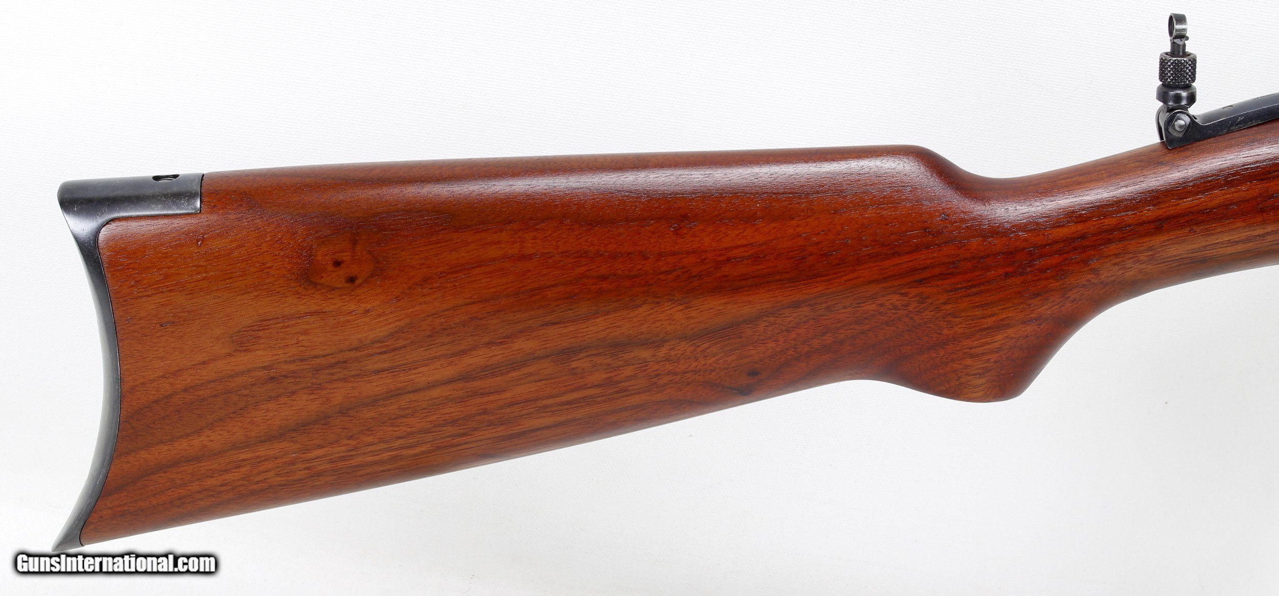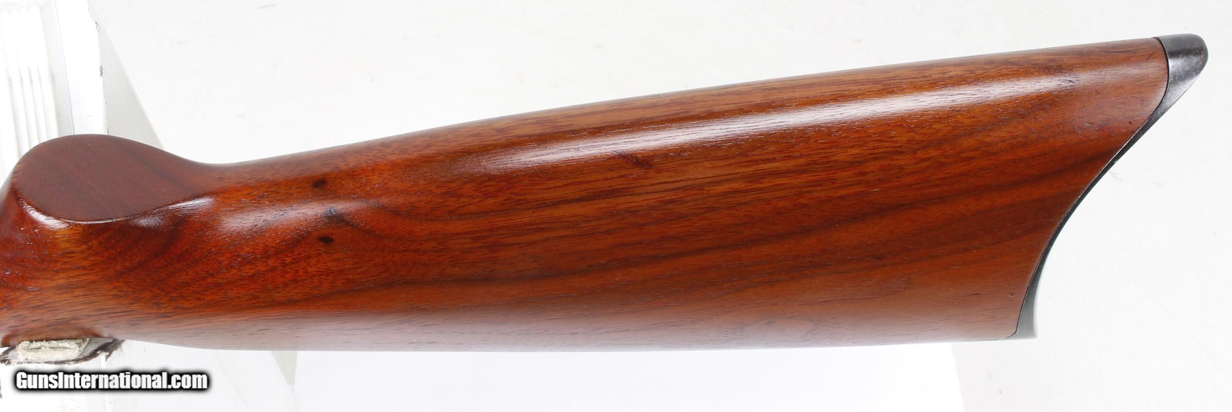 Description: Remington Model 25 Slide Action Rifle in .32-20 WCF. SN #AA6006. Mfg. in June of 1923. TAKEDOWN MODEL. LOP 13". 24" Barrel with a GOOD to VERY GOOD Bore for it's age. STRONG RIFLING with Light Pitting. Both the Blued Metal and Walnut Pistol Grip Stock and Forend have been FULLY RESTORED by SHOOTER'S EXCHANGE and LOOK GREAT. Open sights. Lyman Peep Sight on Back Edge of Receiver. Tube Magazine. Crescent Buttplate. VERY NICE ALL-AROUND RIFLE IN A RARE .32-20WCF CALIBER. Weight: 5.3 lbs. Trigger Pull: 6 3/4 lbs. More photos available upon request. Ships to Lower 48 W/ Insurance $45.00. SOLD Curio/Relic: Yes Rifle Caliber: .32-20 Winchester Manufacturer: Remington Model: 25 Serial Number: AA6006 Barrel Length: 24 Condition: Excellent Metal Condition: Refinished Wood Condition: Refinished Bore Condition: Good to VG for Age Action: Slide LOP: 13 Finish: Blue Weight: 5.3 lbs Manufacture Date: June 1923 |