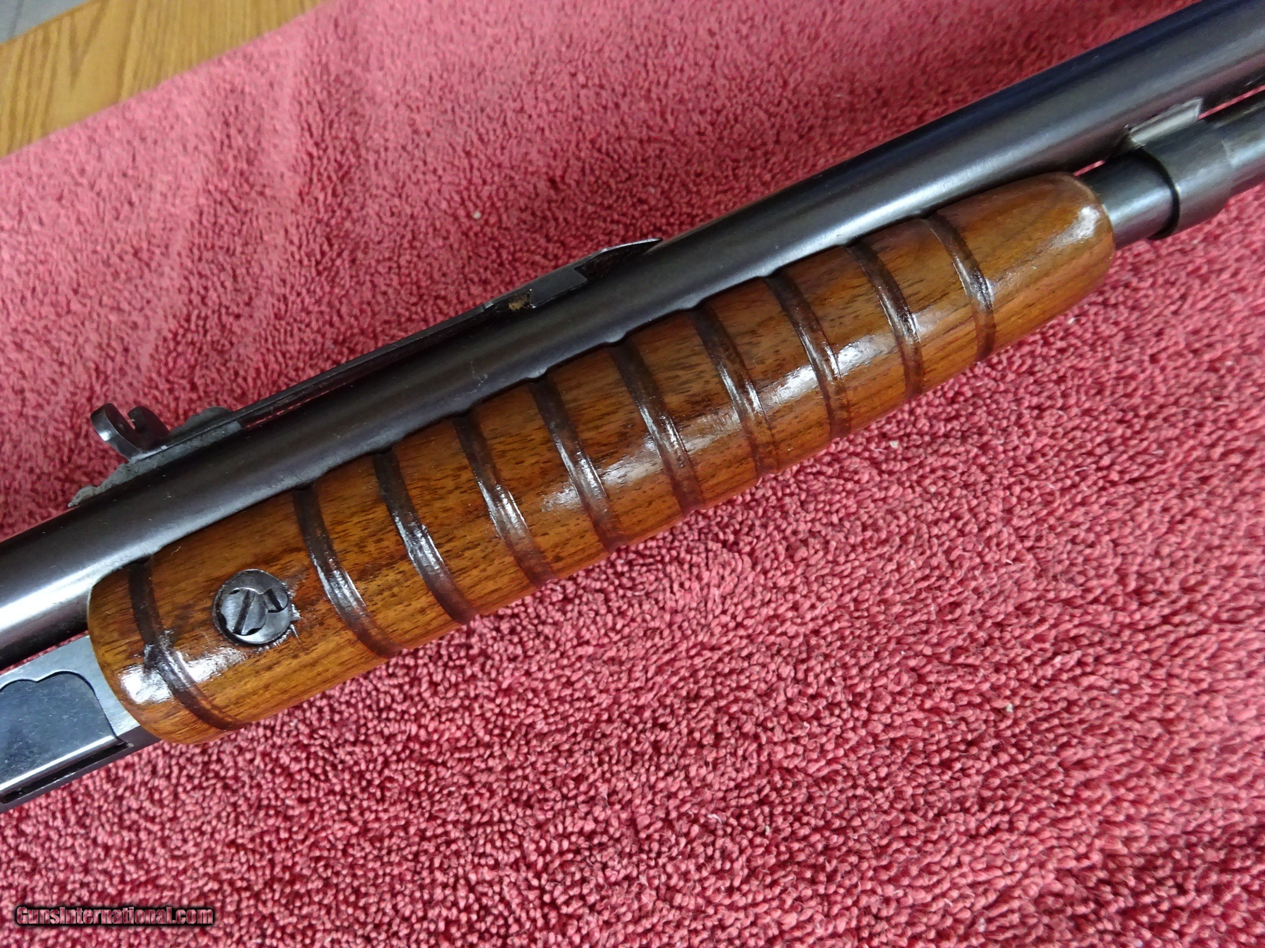 Description: REMINGTON MODEL 25, WINCHESTER 25-20 CALIBER, MIRROR BRIGHT BORE, 99% BLUE ON THE BARREL, FRAME, TRIGGERGUARD. ONLY WEAR IS FROM MOVEMENT OF THE SLIDE. NEAR PERFECT WOOD FINISH, 99% BLUE ON THE CRESCENT STEEL BUTTPLATE. OUTSTANDING 100% ORIGINAL FINISH. RARE GUN IN THIS CONDITION, MADE IN 1924. $1475.00 + $45.00 Insured shipping to an FFL address. See all Pats listings We also have hundreds of pieces of ORIGINAL gun company advertising & memorabilia available for sale. We have no reprints or reproductions. Email for more information. SOLD Curio/Relic: Yes |