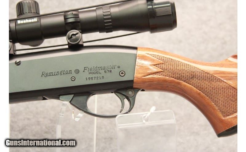 Description: Remington Model 572™ BDL™ Fieldmaster® is one of the most popular pump-action 22 rimfires made in America today. It handles 22 short, 22 long and 22 long rifle cartridges interchangeably. Other features include big-game sights, a positive cross-bolt safety and a grooved receiver for scope mounts. .22 Long Rifle SOLD Chambers: 22 Long Rifle Metal Condition: Very Good Wood Condition: Very Good Bore Condition: Clean Barrels: 23.5 Inches Fore End: 9 Inches Butt Pad: Plastic Weight: 5.8 Pounds Sights: Bushnell Scope Item Location: Woodbury, MN |