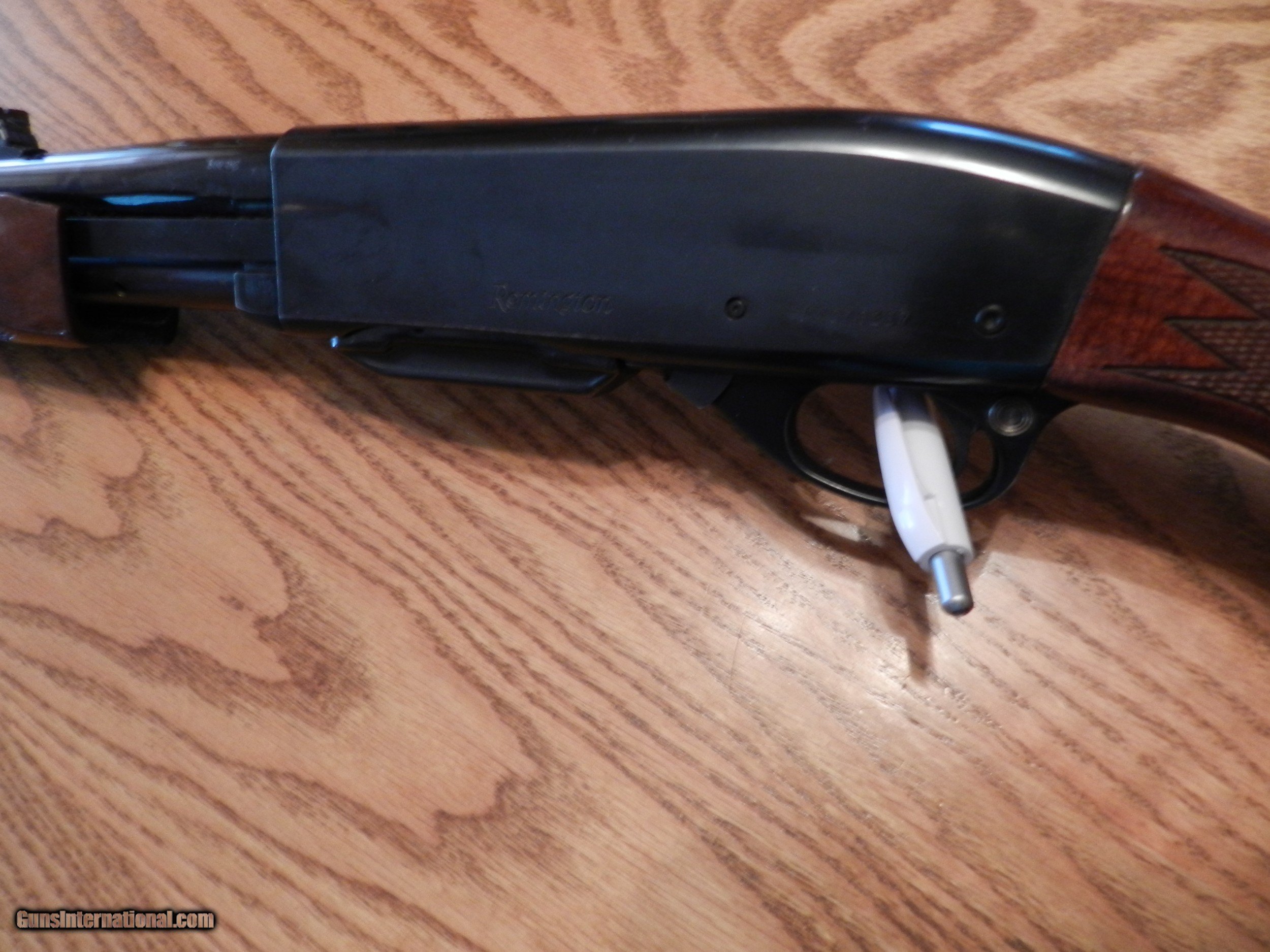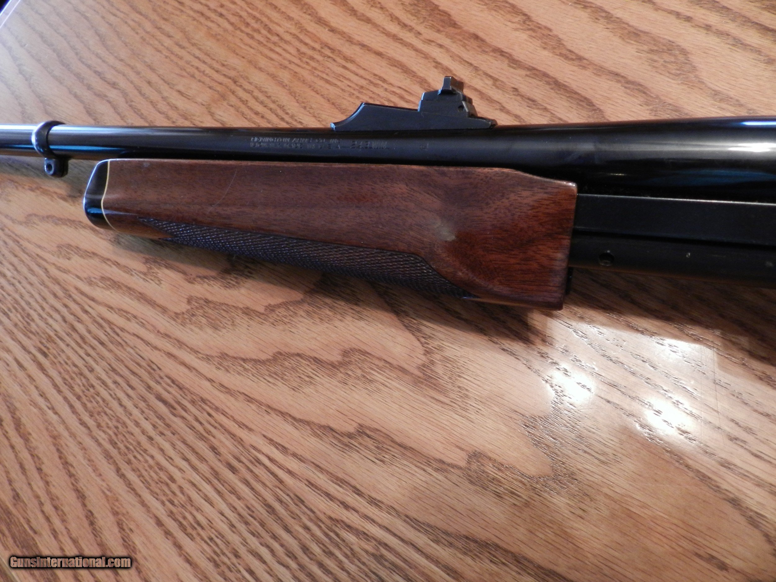 Description: Like New Condition is a Remington Model 6 Pump in 243 Win. caliber , LOOK closely at the pictures , I only see one mark on the right side of the ButtStock.I tried to zoom in on it but it is nothing major. Please call or E-Mail me with any interest or questions. I beleve from serial # this gun should have been Produced in 1983. SOLD Rifle Caliber: .243 Winchester Manufacturer: Remington Model: 6 Serial Number: A4076267 Barrel Length: 22 Condition: Very Good Metal Condition: Shiny Wood Condition: Very Good Bore Condition: Shiny |