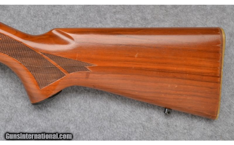 Description: Blue and bore remain excellent showing only light use. Wood shows some light hunting marks. Rear sight notch has been removed. No box. SOLD Manufacturer: S/N 436XXX Caliber Info: .223 Rem. Metal Condition: Excellent Wood Condition: Very Good Bore Condition: Excellent Barrels: 22 Triggers: Factory Stock: Checkered Walnut Pistol Grip with Black Cap Stock Dimensions: 13 1/4" LOP Fore End: Checkered Walnut Butt Pad: Checkered Aluminum Weight: 7 3/4 LB Sights: Bead Front - Rear Notch Missing - Weaver Scope Base Included Item Location: Wheeling, WV |