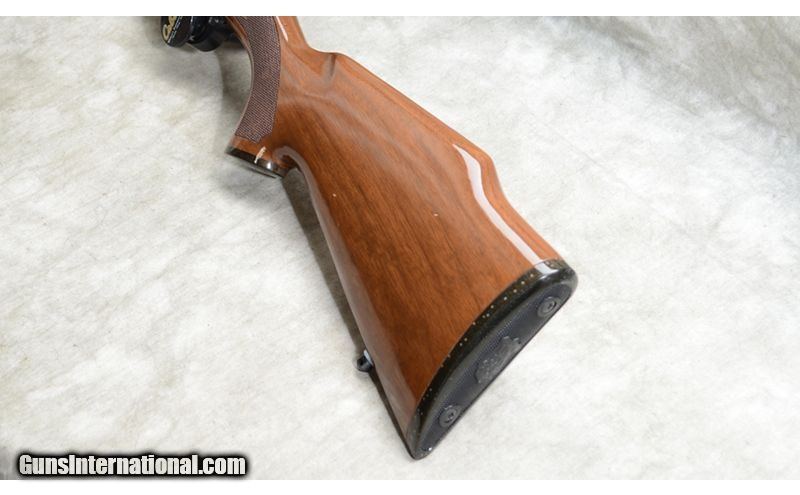 Description: A nice Model 7600 with Deluxe features including black tip and grrip caps, better quality wood, sharp checkering and elevated comb. .270 Winchester SOLD Chambers: 4-round magazine is missing. Metal Condition: "Very good. Blue is good overall, There area a couple of thin spots of corrosion, as from a bloody finger print. Wood Condition: Very good. Bore Condition: Shiny and bright with good rifling. Barrels: 22-inch Triggers: Factory trigger. Stock Dimensions: 13-1/2 inch LOP. Fore End: Checkered walnut wit black tip cap. Butt Pad: Black walnut plate. Weight: 7 lb - 1 oz Sights: Bead and ramp-type notch open sights. Scope-ready. Item Location: Rogers |