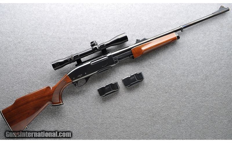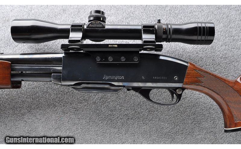 Description: The Remington Model SIX was a continuation of the Model 760 and only produced from 1981 to 1987. Research indicates that only 2754 units were produced in .308 Winchester, making this rifle a somewhat rare find. .308 Winchester SOLD Chambers: .308 Winchester Metal Condition: This rifle could almost pass for new but for the operational wear on the action bars and some slight finish wear at the action tube block. Wood Condition: The stock and fore-end are exceptionally nice with no visible blemishes Bore Condition: Bright & Sharp Barrels: 22" with barrel band sling stud Stock Dimensions: !# 1/4" LOP Fore End: Checkered semi-beavertail slider with grasping grooves & ebony tip . Butt Pad: Checkered composite with Remington logo Weight: 8 lbs 6 oz. Sights: "Ramp front blade, sliding ramp rear leaf, a Redfield 3-9 widefield scope is installed on a Williams side mount scope base and the scope features a top turret compass. Item Location: Grand Junction, CO |