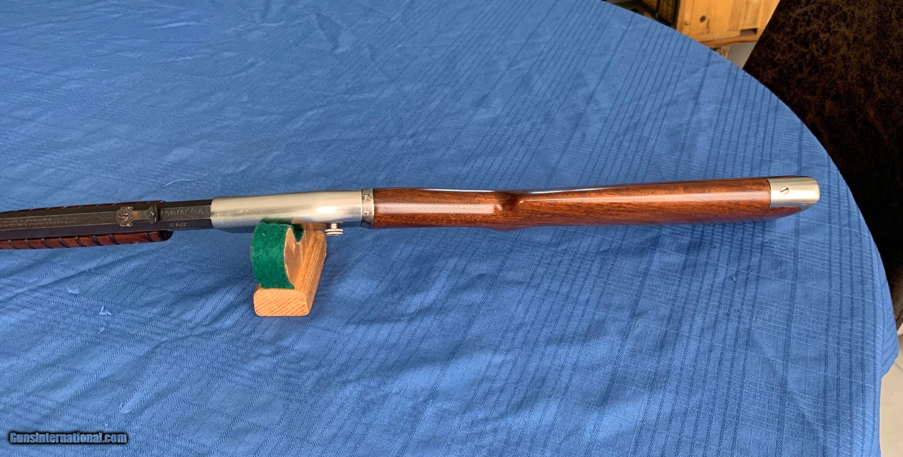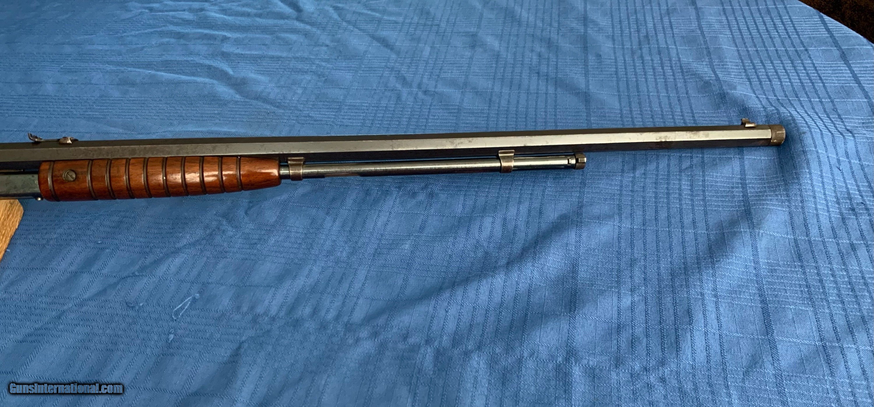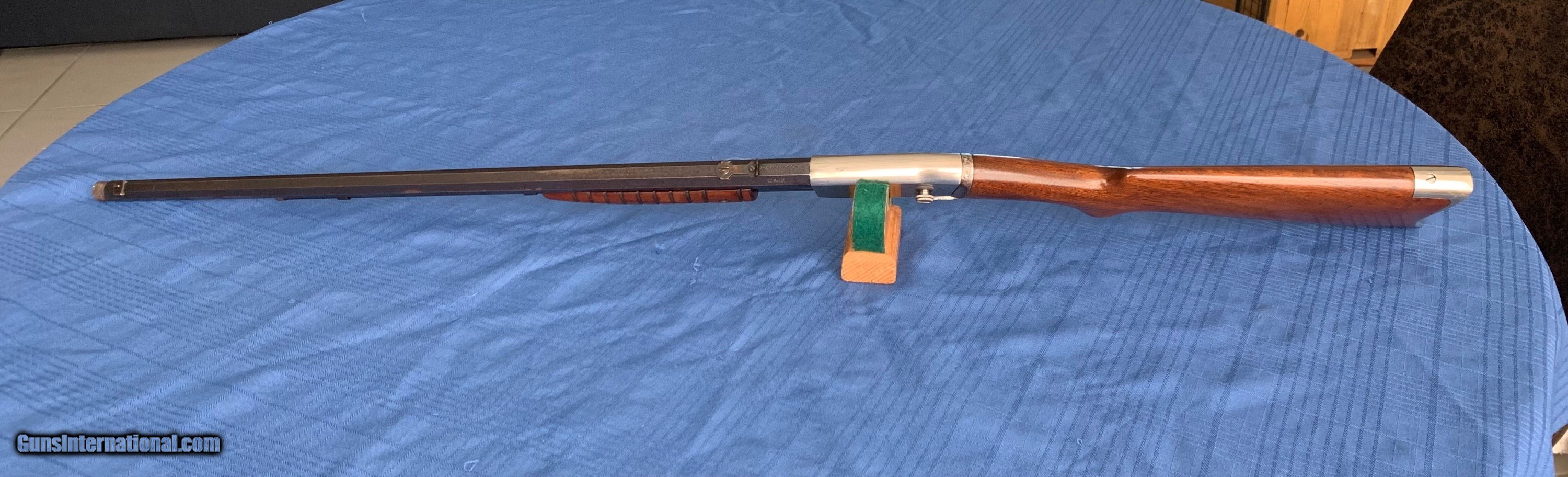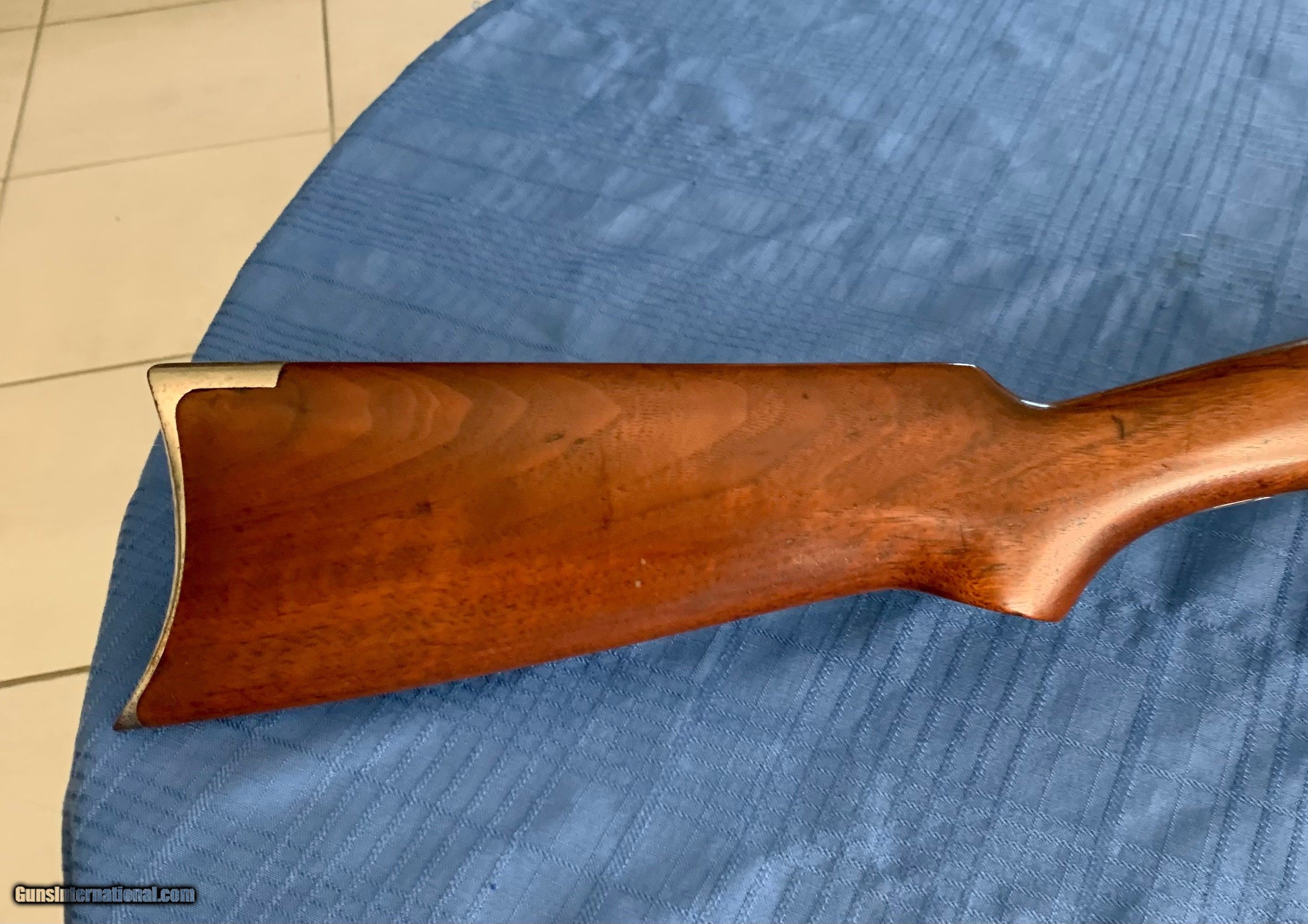 Description: Heres a excellent example of a Remington pump rifle in 22 short only ! Gallery Special model ! Serial number 21245. Special order threaded for a factory silencer ! Silencers where legal up untill the 1950's. You could special order one at Remington Co. Special Order Factory Nickel finish ! Most all of the nickel still remaining on the frame and butt plate ! Barrel and tube are blue ! Gun has all of its original blue turning a blue brown patina. Walnut stocks are in very good original condition ! Bore and mechanics are excellent! Gun is in excellent working condition . Please review my photos and please email with any questions ? 3 day inspection as allways! Thank you for looking, Little Jo SOLD Antique: Yes Rifle Caliber: .22 Short Manufacturer: Remington UMC Model: Gallery Special Serial Number: 22245 Condition: Excellent