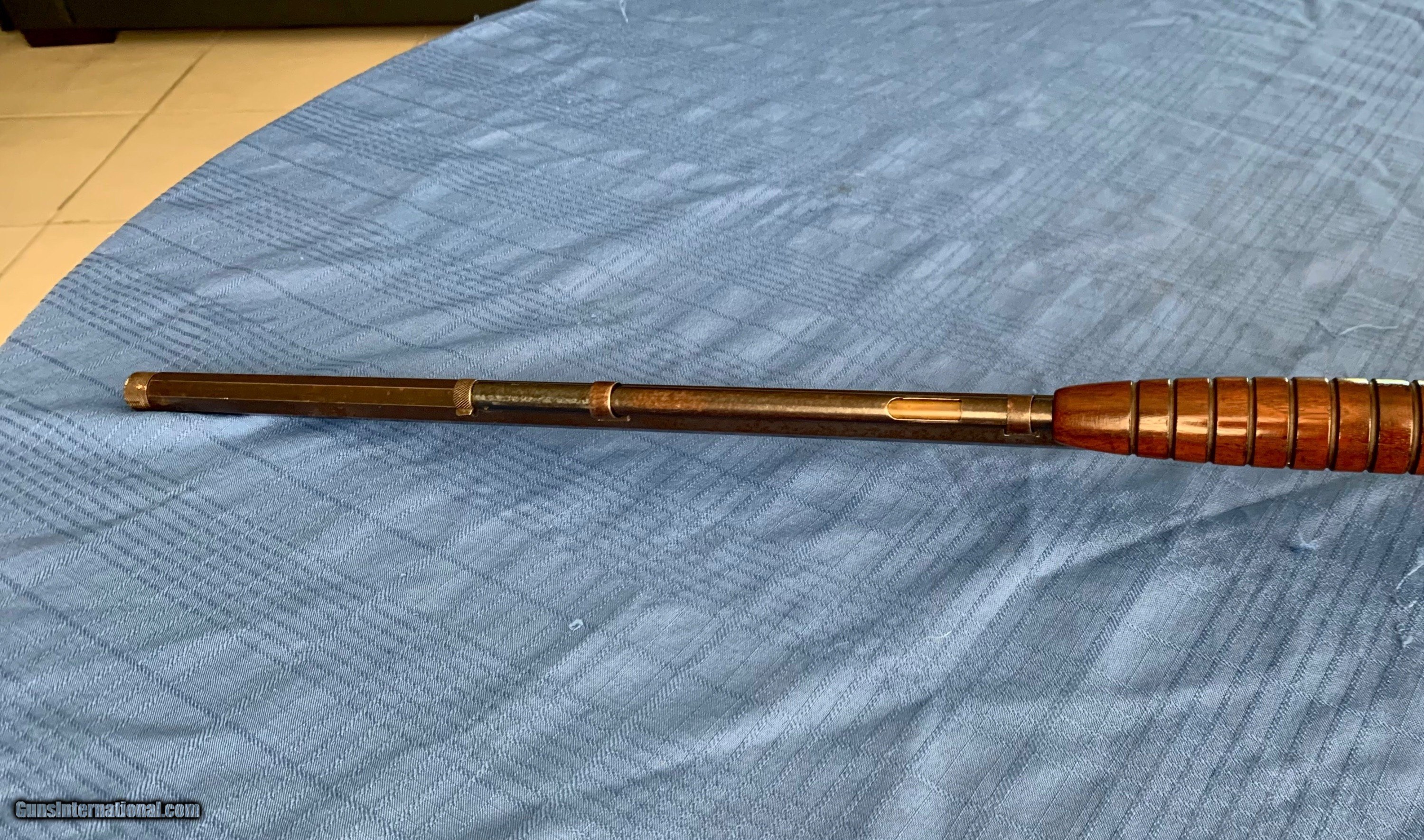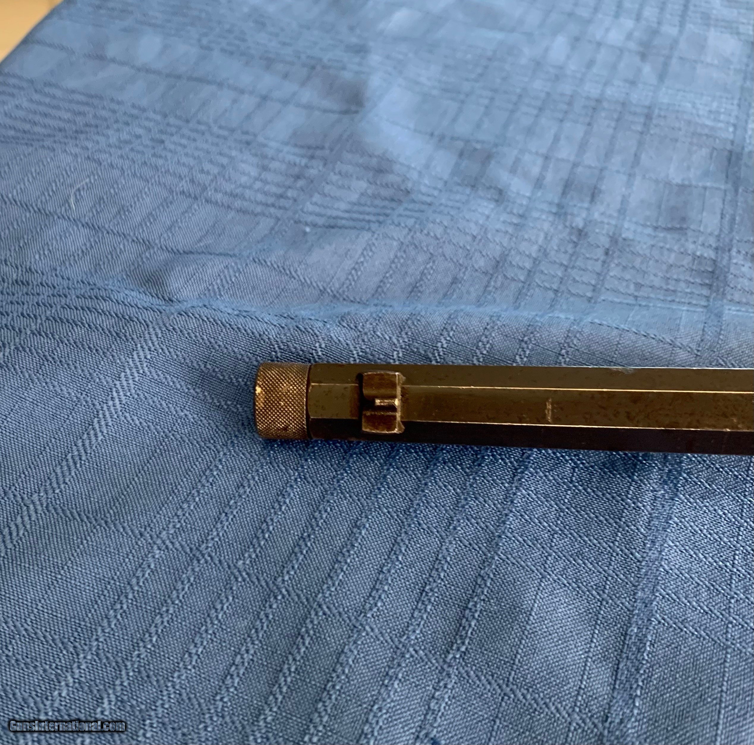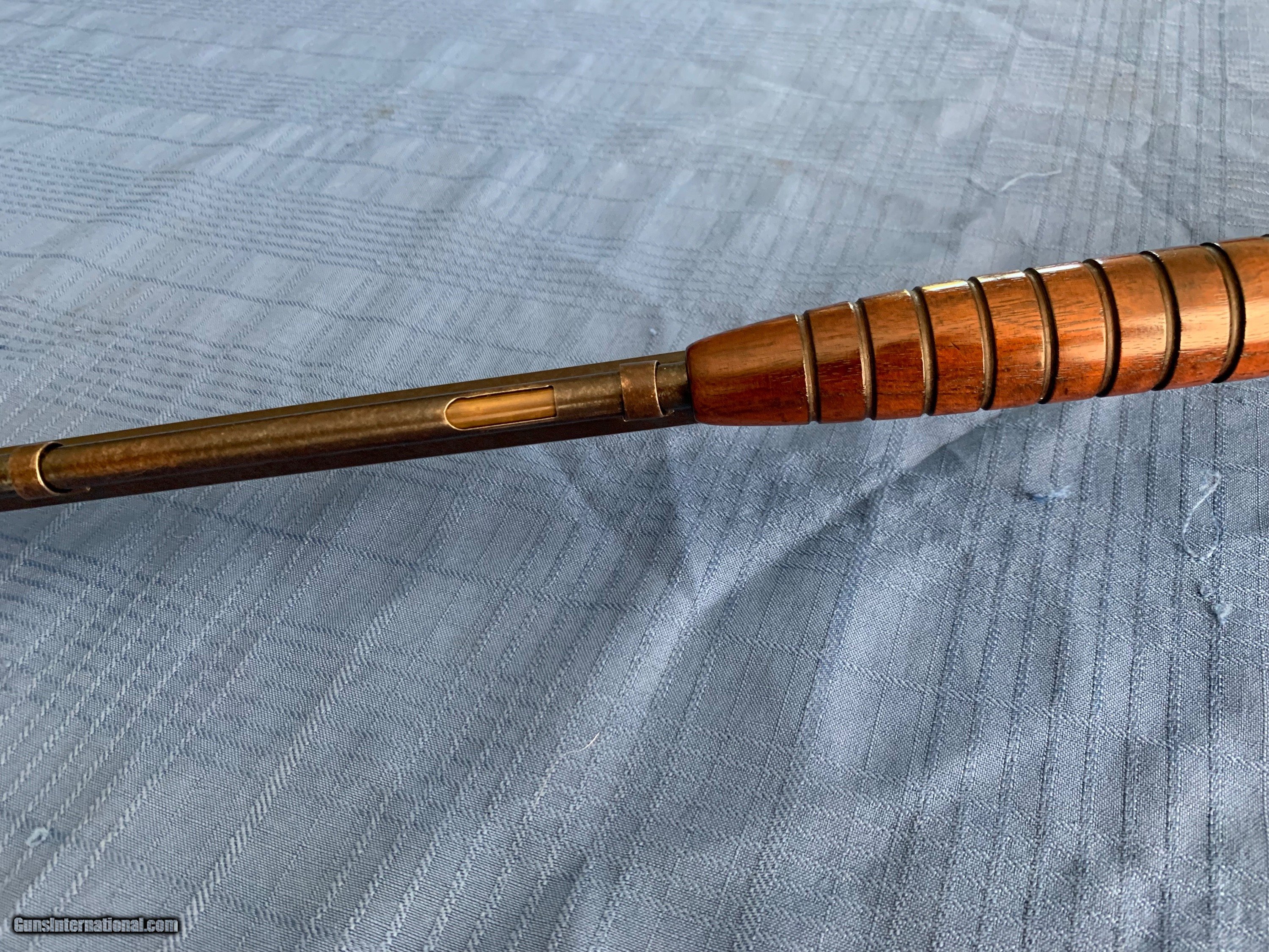 Description: Heres a excellent example of a Remington pump rifle in 22 short only ! Gallery Special model ! Serial number 21245. Special order threaded for a factory silencer ! Silencers where legal up untill the 1950's. You could special order one at Remington Co. Special Order Factory Nickel finish ! Most all of the nickel still remaining on the frame and butt plate ! Barrel and tube are blue ! Gun has all of its original blue turning a blue brown patina. Walnut stocks are in very good original condition ! Bore and mechanics are excellent! Gun is in excellent working condition . Please review my photos and please email with any questions ? 3 day inspection as allways! Thank you for looking, Little Jo SOLD Antique: Yes Rifle Caliber: .22 Short Manufacturer: Remington UMC Model: Gallery Special Serial Number: 22245 Condition: Excellent |