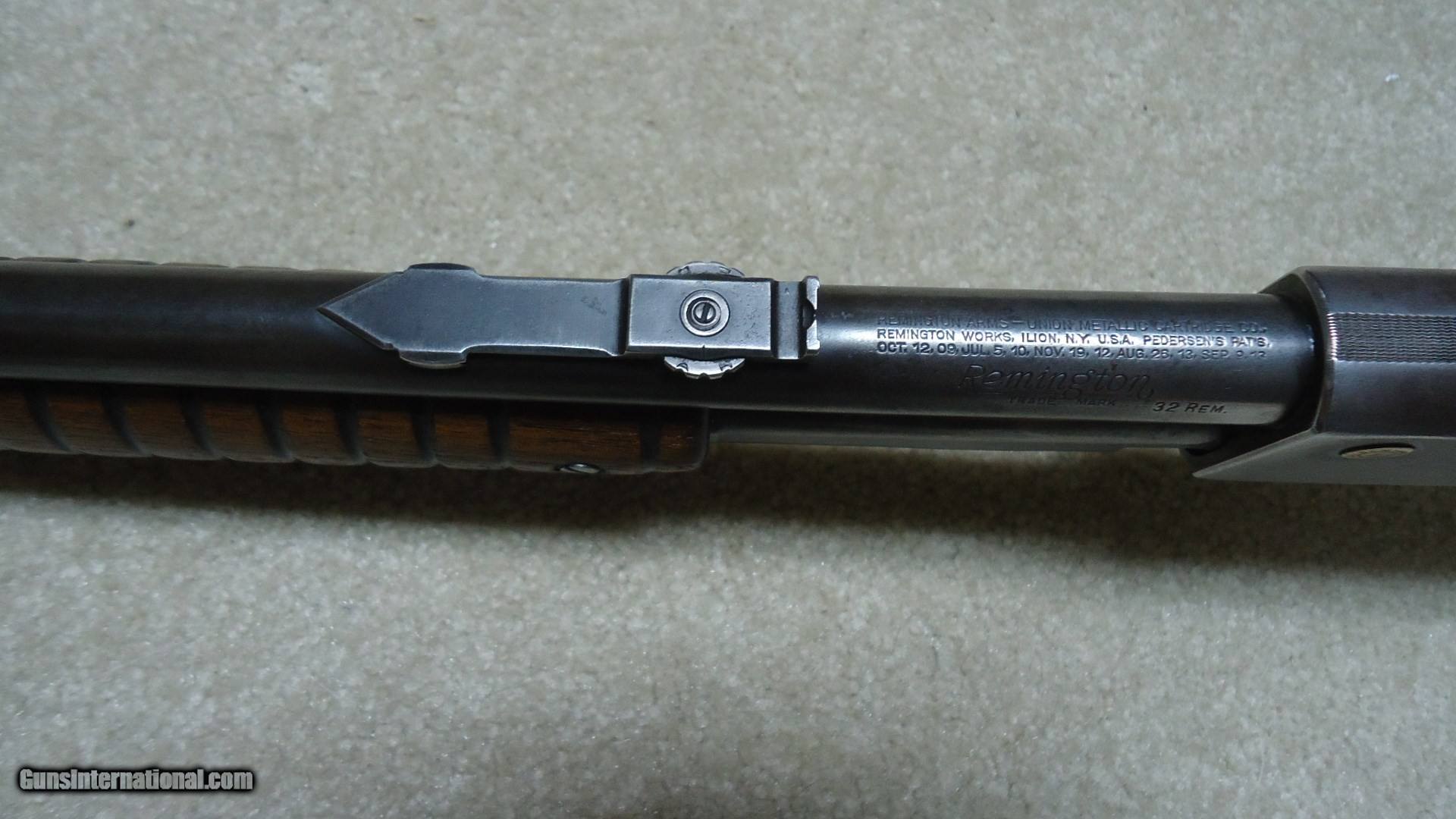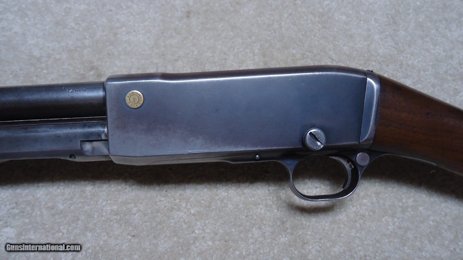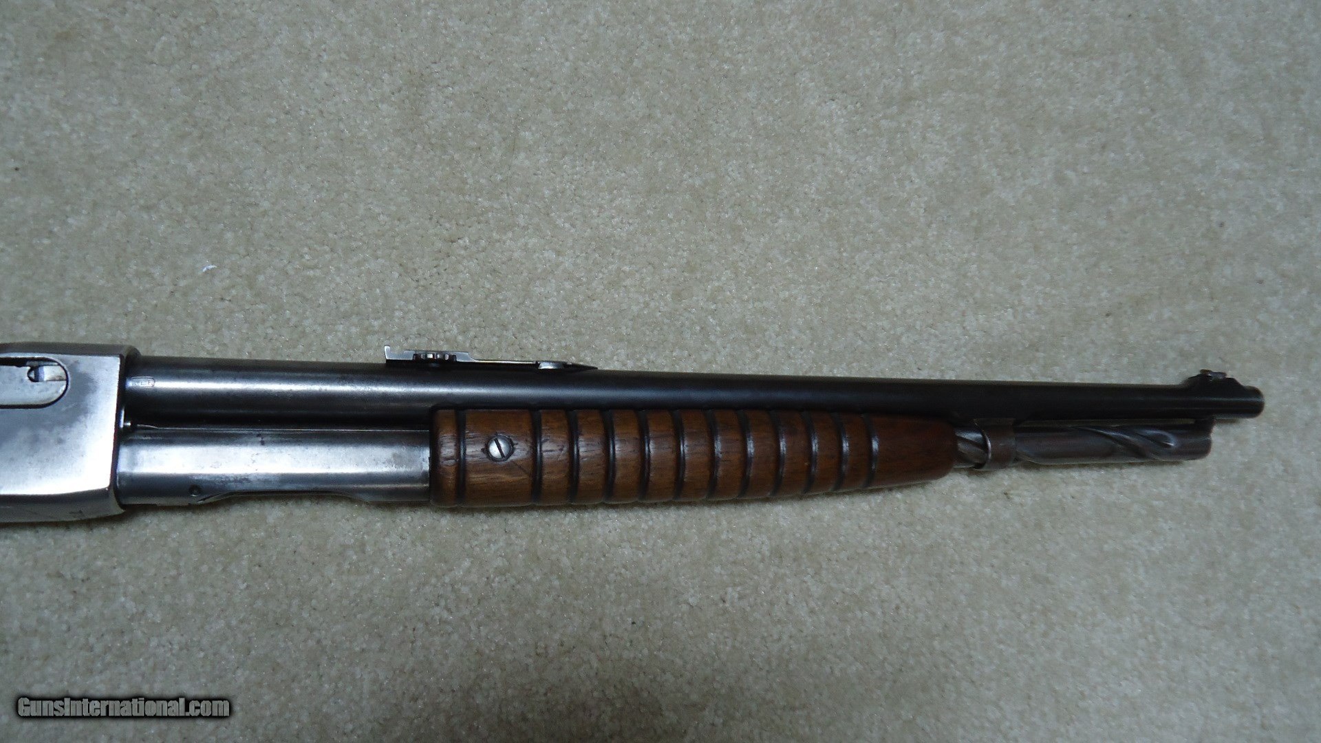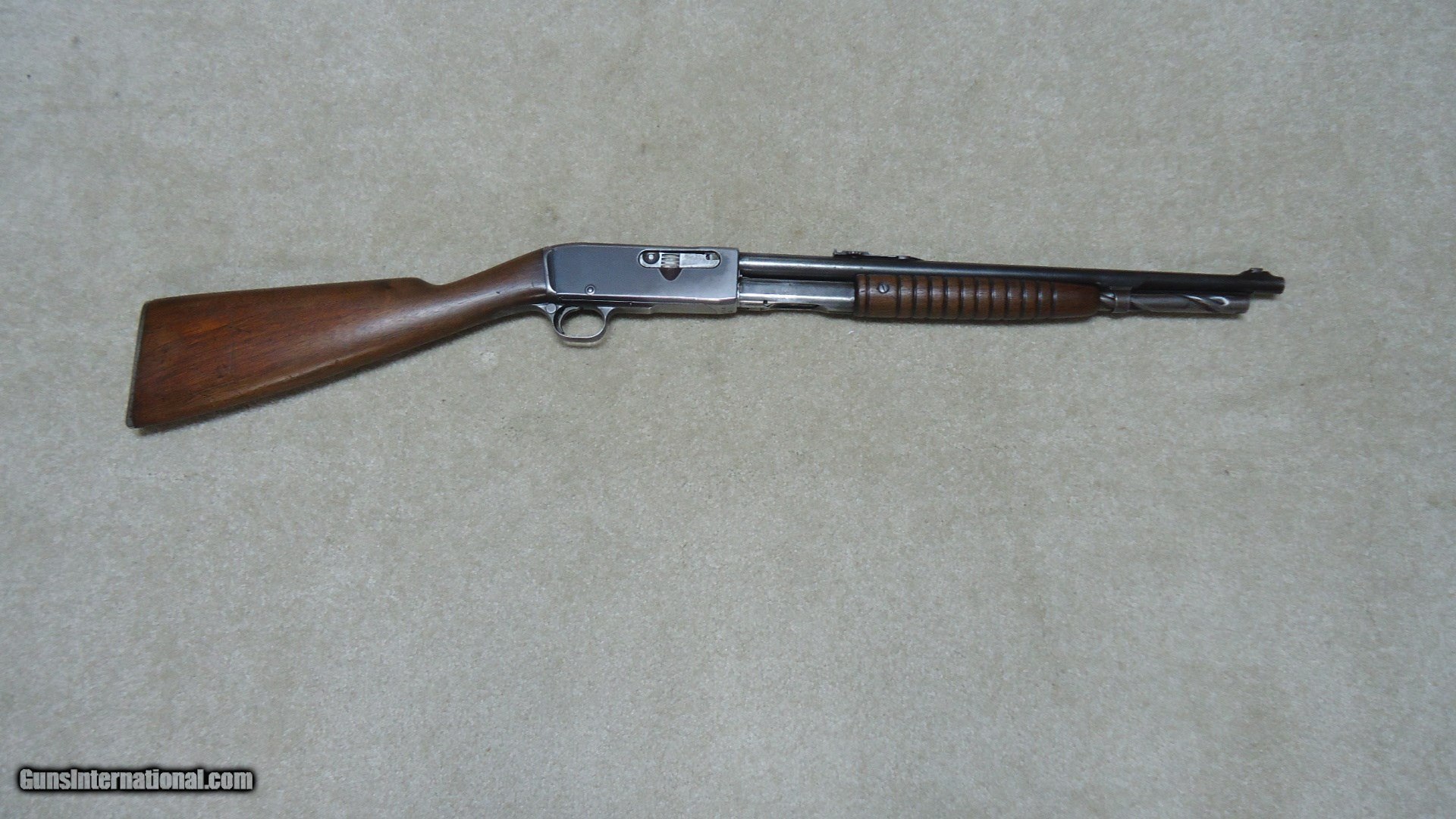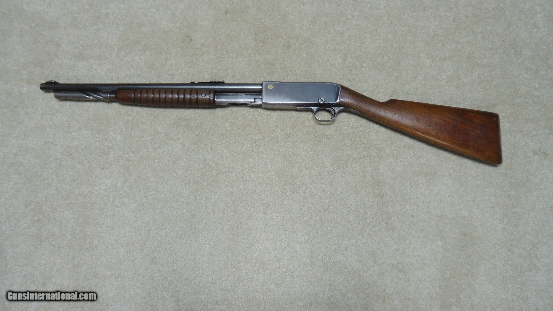 SELDOM SEEN M-14R 18 ½” CARBINE, STRAIGHT GRIP PUMP RIFLE, .32 REM. CALIBER WITH THUMBNAIL SAFETY