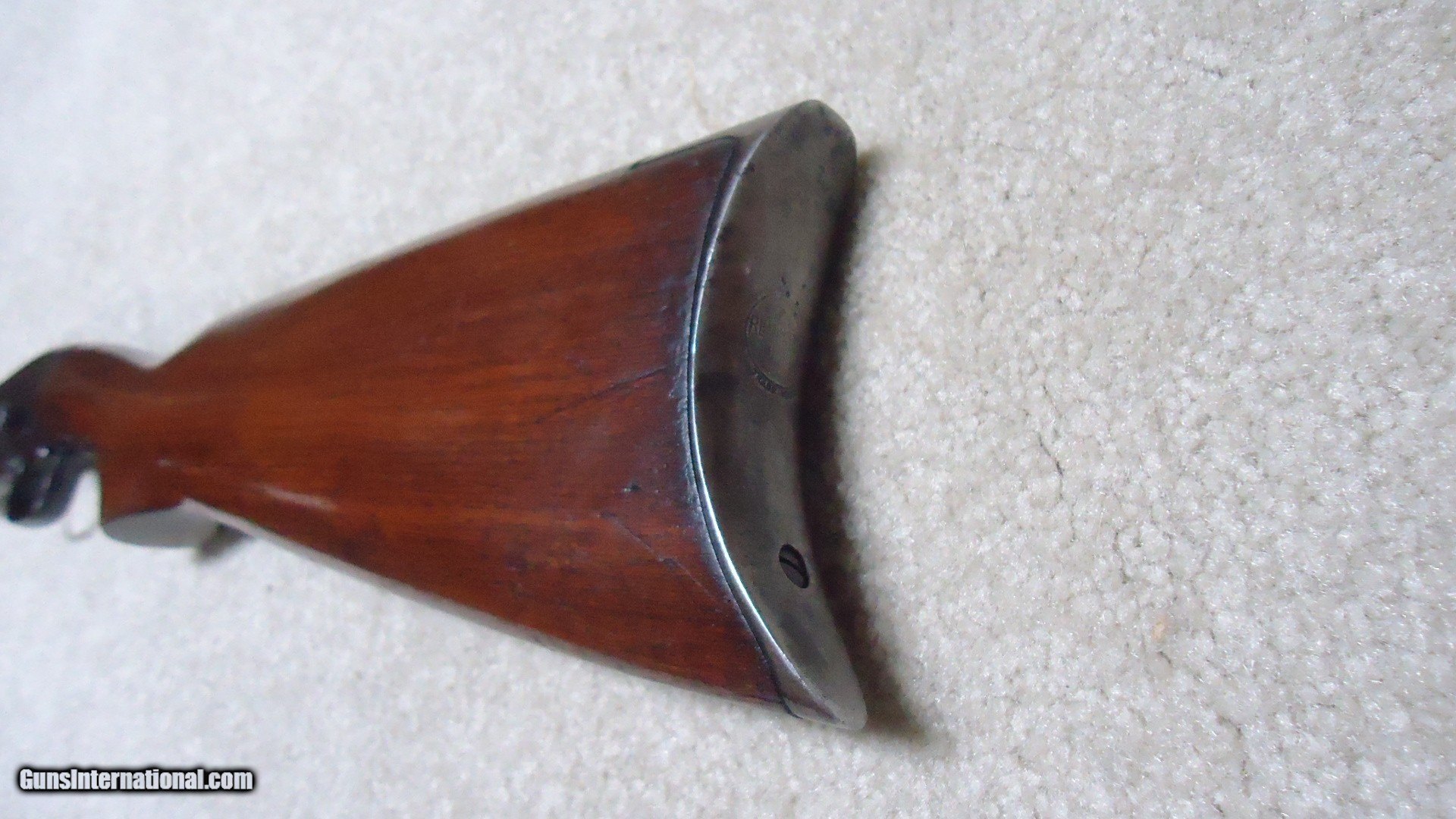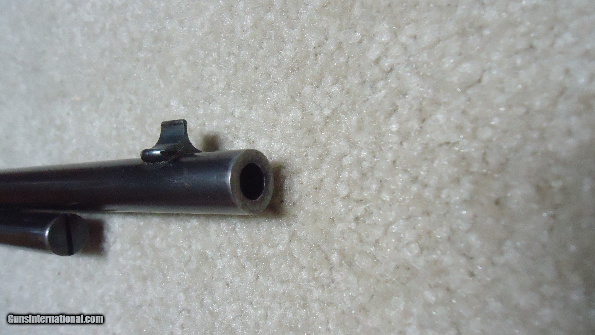Description: FIRST YEAR PRODUCTION MODEL 25 PUMP RIFLE IN DESIRABLE .32-20, #4XXX MADE 1923. According to the barrel code "C P" this fine rifle was manufactured in April, 1923. Most of these hard to find rifles seem to be in .25-20 caliber with .32-20 made in fewer numbers and now difficult to find. This is a fine example with excellent wood with tight wood to metal fit. The receiver retains nearly all of the original deep blue. The barrel and mag show good blue with a little thinning and ageing only. Excellent markings, Marbles buckhorn rear sight (needs elevator bar only) and blade/bead front sight. Tight action and generally excellent fairly bright bore- any scattered roughness extremely minor and will probably clean up fine. A really fine, very early example in a great caliber and nearly 100 years old. SOLD Curio/Relic: Yes Rifle Caliber: .32-20 Winchester Manufacturer: REMINGTON Model: MODEL 25 Serial Number: 4XXX Barrel Length: 24 Condition: FINE+ |