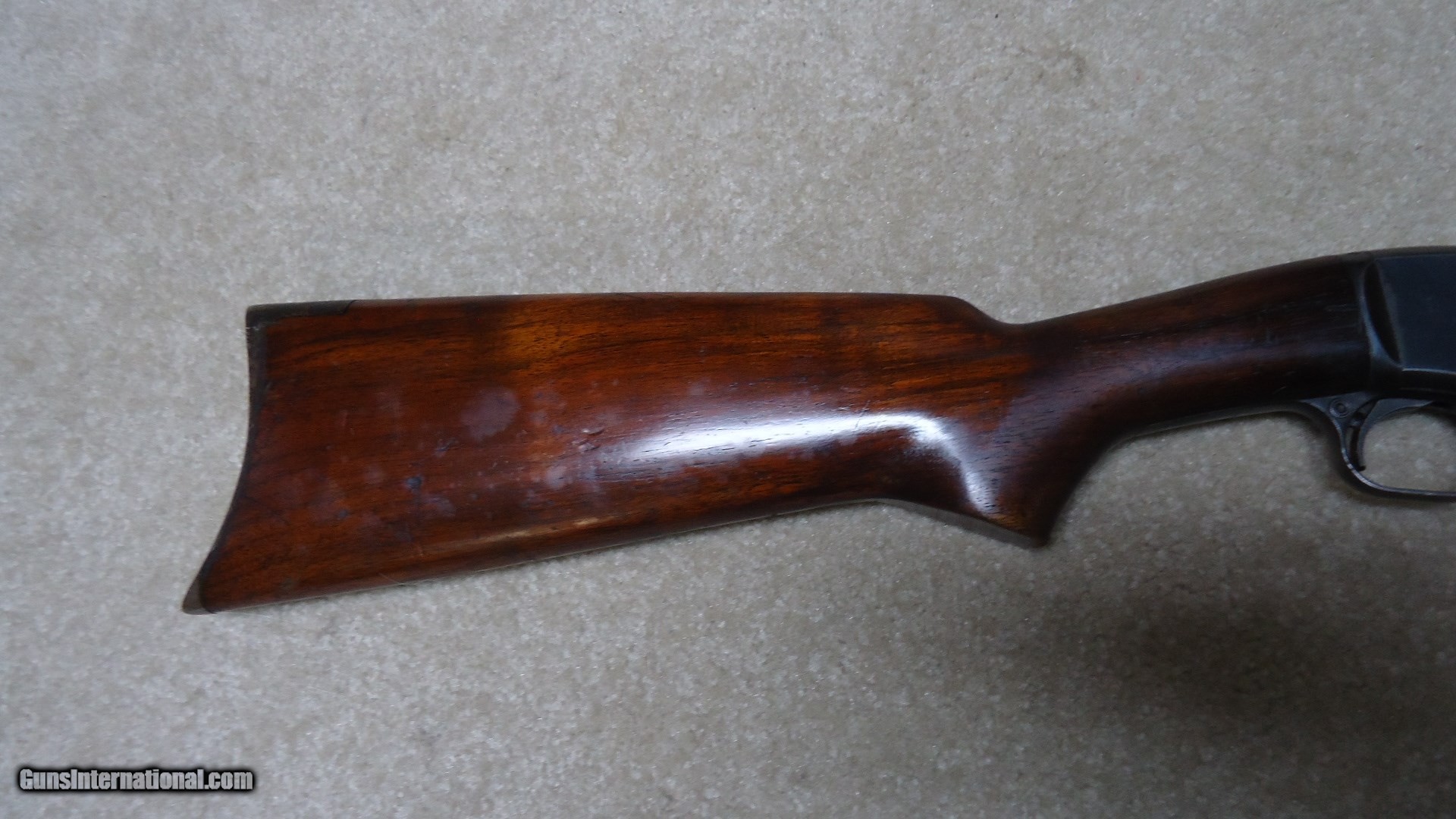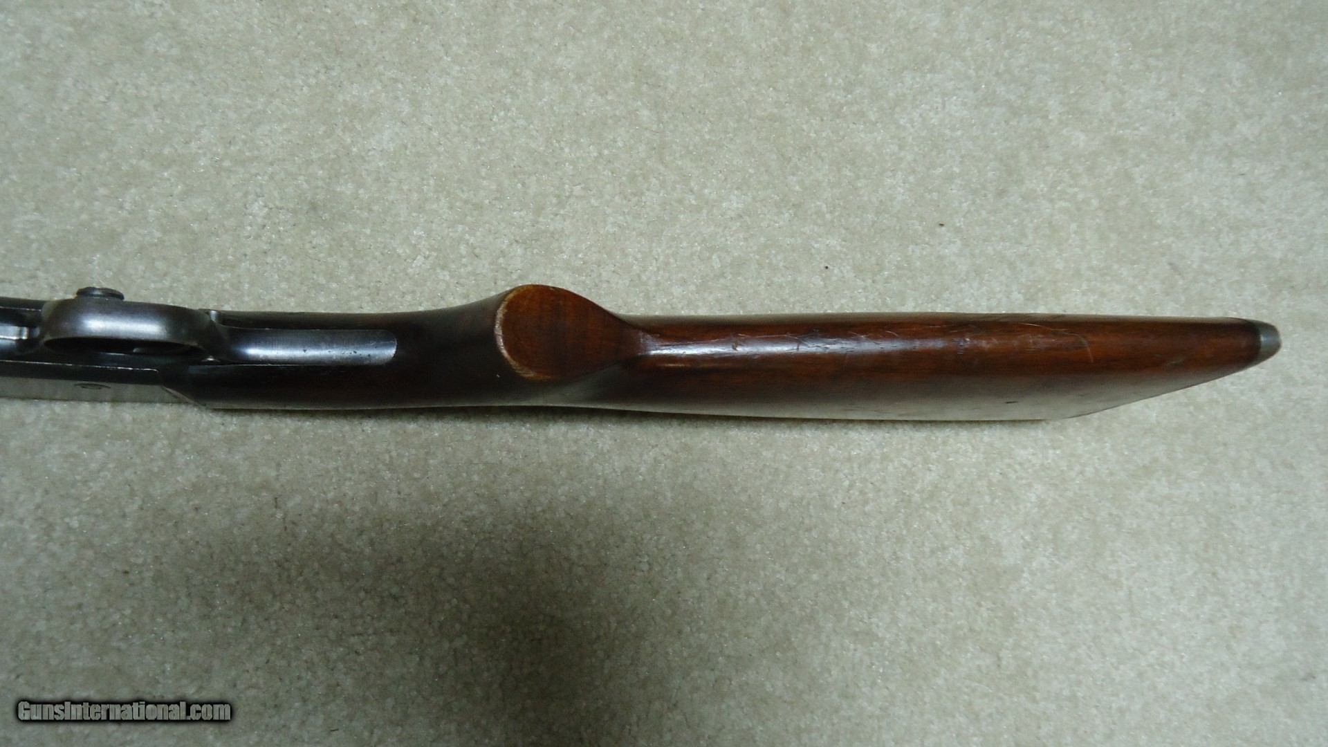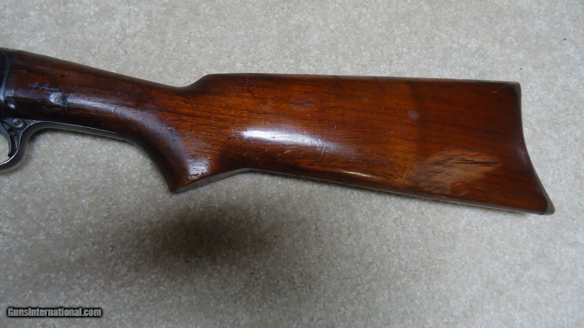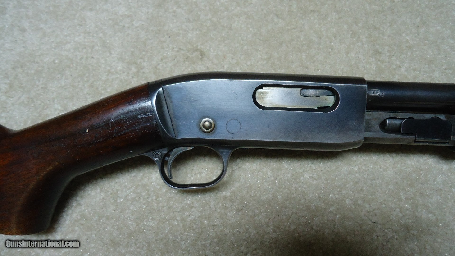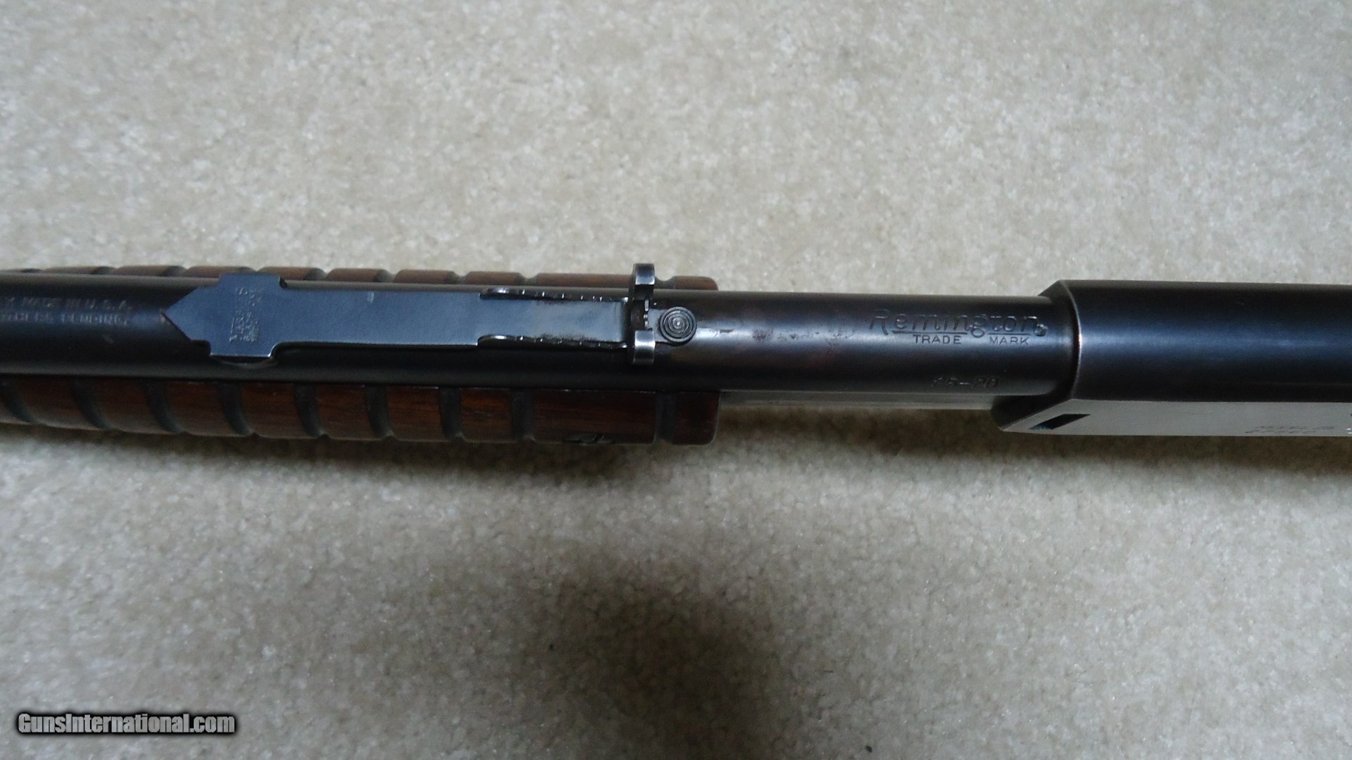 Description: MODEL 25 PUMP RIFLE IN .25-20 CALIBER, SERIAL NUMBER 27XXX. These fine pre-war rifles have become very difficult to find. This one retains excellent blue on the barrel and magazine with only some wear on the tube where it rides through the retaining band. The receiver also retains most of the deep factory blue with only some thinning on the bottom ahead of the trigger guard. However, if you look very carefully in the right light you may be able to detect some filled holes in the top of the barrel ahead of the receiver behind the rear sight and ahead of the rear sight. They have been so perfectly and expertly filled that they are almost undetectable. In fact, I owned this rifle for some time before I noticed it! Excellent forend and but stock with one wide rub/scratch area on the left side of the butt stock where it looks like something scraped along the side. It should be fairly easy to mend this with a little fine sand paper and stock finish. Correct steel Remington marked crescent butt plate. Has a Marbles buckhorn rear sight with a blade/bead front sight. Perfect bright and sharp bore with tight mech. Lots of life left in this one! SOLD Curio/Relic: Yes Manufacturer: REMINGTON Model: MODEL 25 Serial Number: 27XXX Caliber Info: .25-20 Condition: FINE Barrels: 24" ROUND |