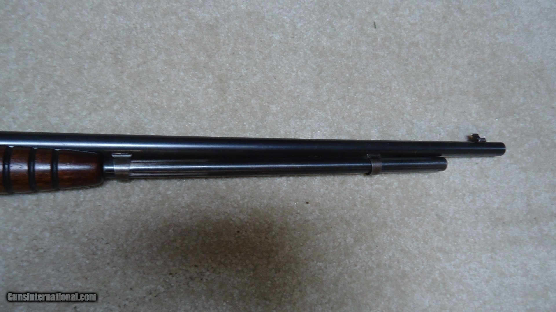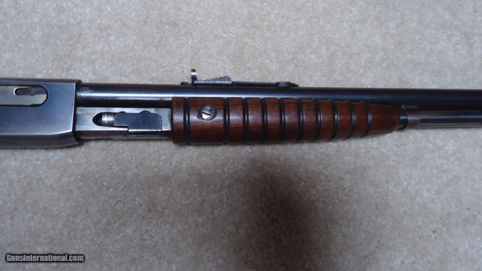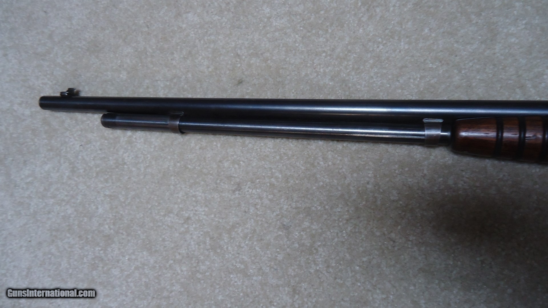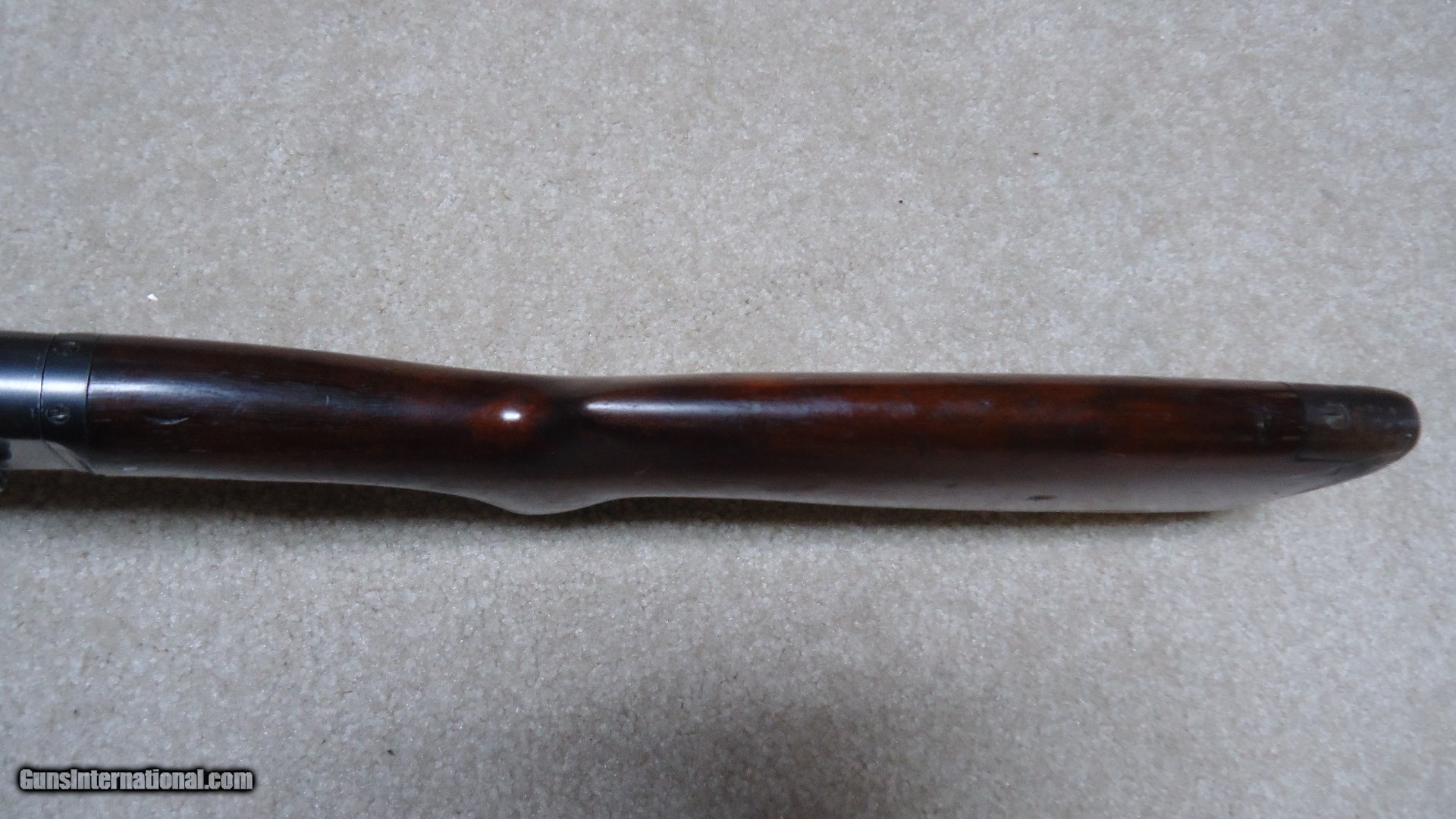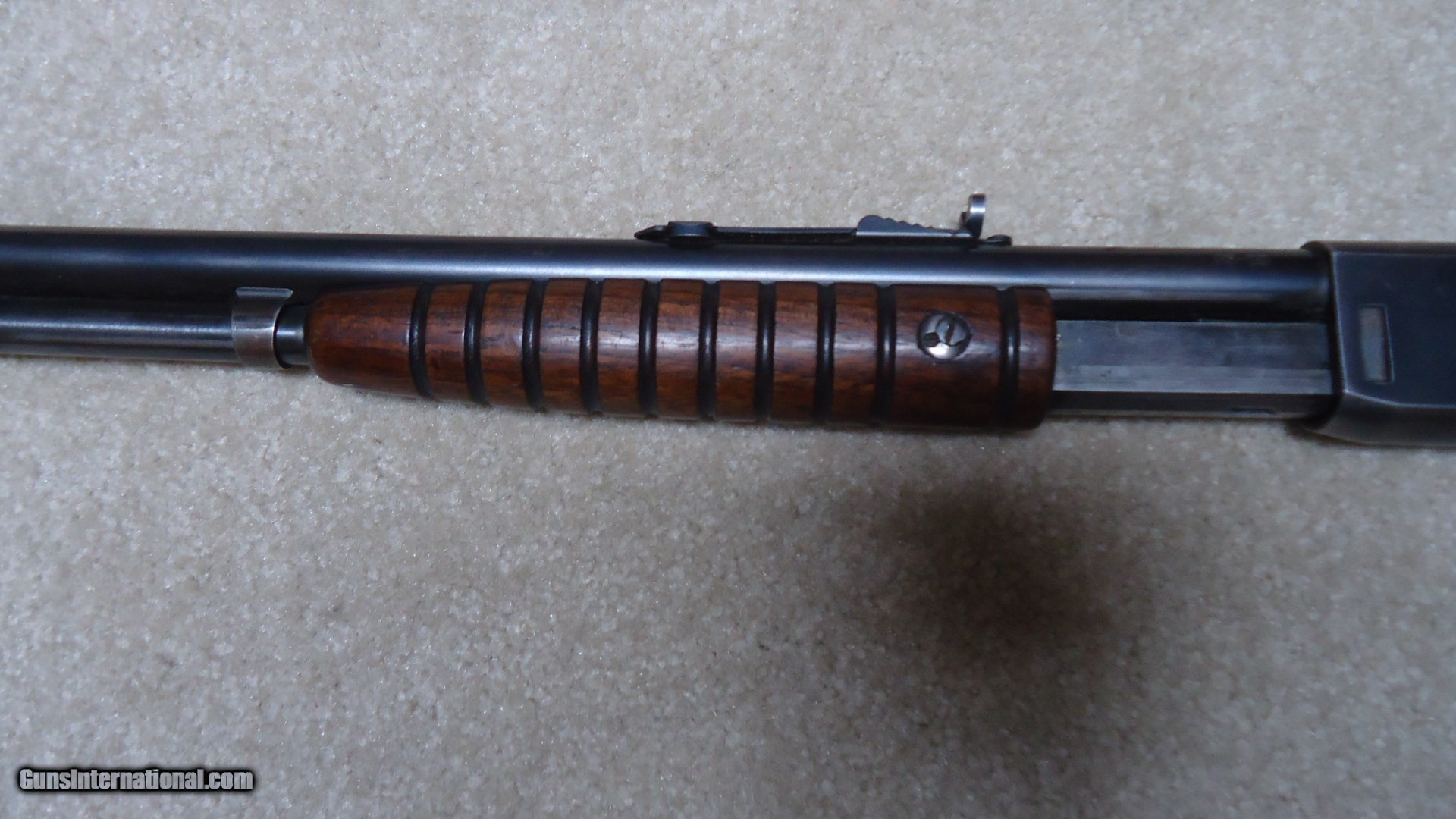 Description: MODEL 25 PUMP RIFLE IN .25-20 CALIBER, SERIAL NUMBER 27XXX. These fine pre-war rifles have become very difficult to find. This one retains excellent blue on the barrel and magazine with only some wear on the tube where it rides through the retaining band. The receiver also retains most of the deep factory blue with only some thinning on the bottom ahead of the trigger guard. However, if you look very carefully in the right light you may be able to detect some filled holes in the top of the barrel ahead of the receiver behind the rear sight and ahead of the rear sight. They have been so perfectly and expertly filled that they are almost undetectable. In fact, I owned this rifle for some time before I noticed it! Excellent forend and but stock with one wide rub/scratch area on the left side of the butt stock where it looks like something scraped along the side. It should be fairly easy to mend this with a little fine sand paper and stock finish. Correct steel Remington marked crescent butt plate. Has a Marbles buckhorn rear sight with a blade/bead front sight. Perfect bright and sharp bore with tight mech. Lots of life left in this one! SOLD Curio/Relic: Yes Manufacturer: REMINGTON Model: MODEL 25 Serial Number: 27XXX Caliber Info: .25-20 Condition: FINE Barrels: 24" ROUND |