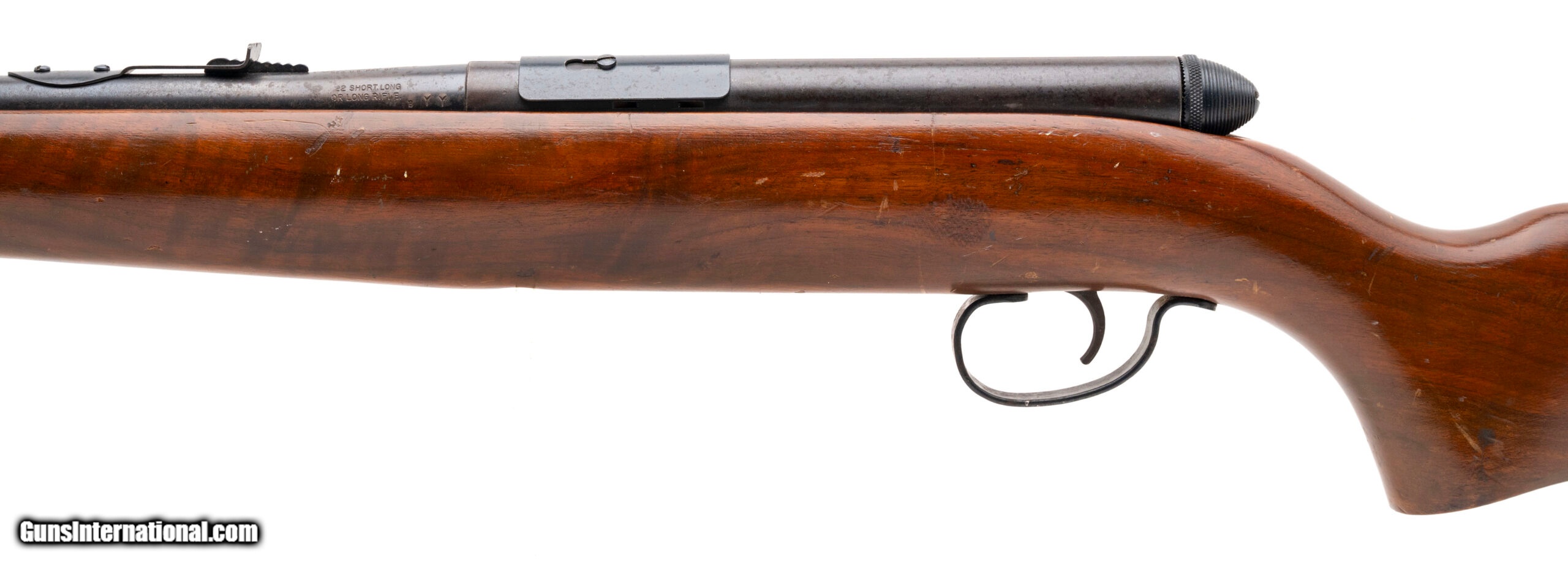 Description: "Made in 1952, .22LR with an 24"" Barrel. Bore is bright with strong rifling. Semi-Auto Rifle. Does not have a safety selector. Finish is in good condition with slight brown patina present along the barrel and receiver. Wood stock is in good condition with wear and some markings present along the stock. SOLD |