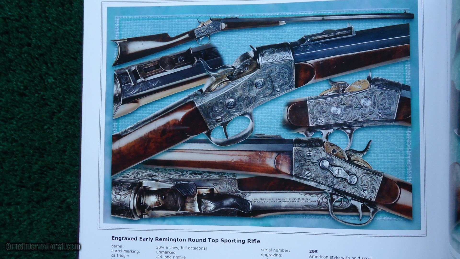 Description: This gun is pictured on page 108 of the Remington Rolling Block Sporting Rifles by Marcot and Lewis. This is an early one with the round top frame. Walnut stocks are uncheckered and in excellent condition with most varnish and a rifle style buttplate. 30 inch octagon barrel with a very good bore. The receiver is elaborately engraved in the typical rolling block style engraving. Back of barrel as well as front of barrel is engraved. Beechs front sight and typical Remington flip up rear sight. Gun retains about 90% original blue turning dark. Receiver has some poor storage spots but retains traces of case color turning dark. Rolling block with gold gilted hammer. This gun came from my personal collection. Leroy Merz Antique Firearms specializes in antique and vintage Winchesters and other fine American firearms. Since 1965 Mr. Merz has taken part in the world of firearms and has been a contributor to many well known reference books. We have hundreds of additional guns in every price range at our home online. Search for Merz Antiques in google. SOLD Antique: Yes |