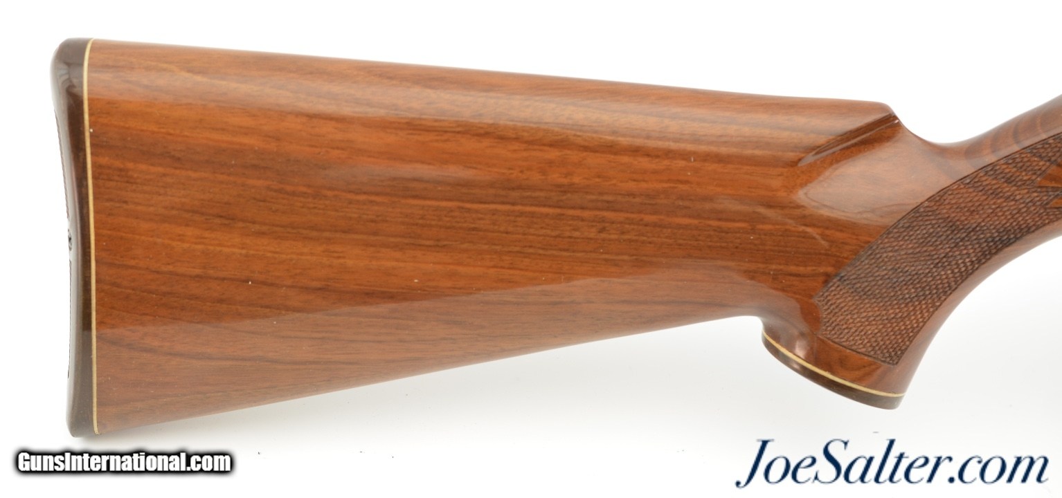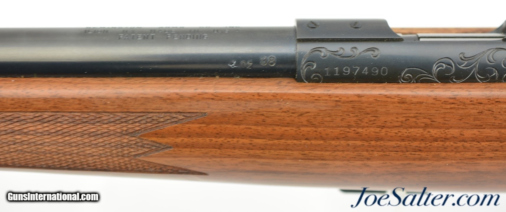 Description: Serial #1197490, .22 S,L,LR, 24 inch barrel with a bright, excellent bore. This is the Remington Model 541-S "Custom" Sporter rifle manufactured in 1975 featuring an adjustable match trigger, scroll engraved receiver and trigger-guard, checkered walnut stock with rosewood pistol grip cap, buttplate and forend tip that is factory drilled and tapped for optics. In excellent, like new condition the magazine fed, bolt action retains virtually all, 99% plus original high polish blue on the barrel and frame. The stock is likewise excellent plus with only very minor handling and storage marks. It comes in the original cardboard box numbered to the gun with manual, one five-round and one ten-round magazine. An beautiful example of the 541-S Custom rifle. FFL SOLD |