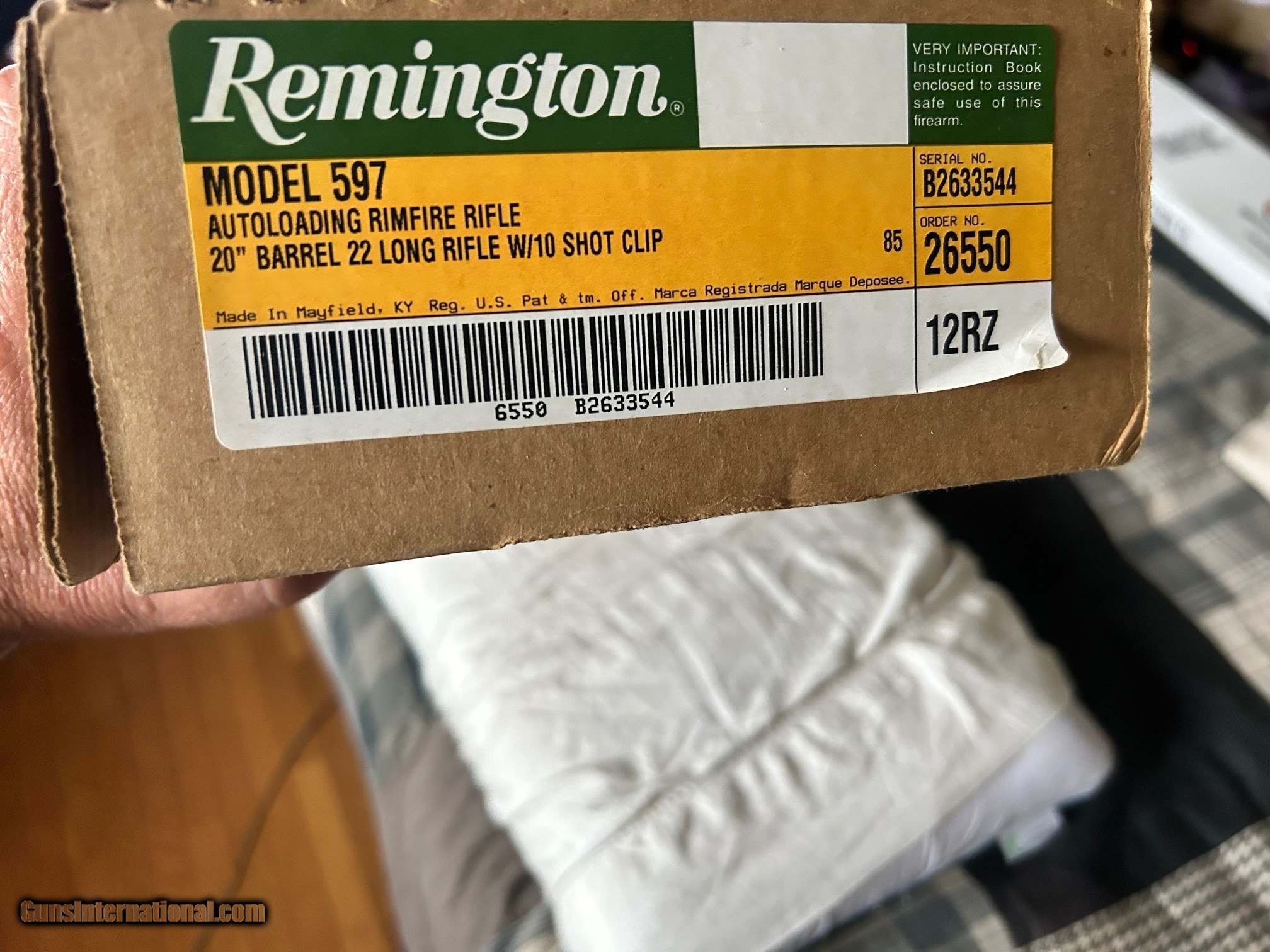 Description: The Remington Model 597 is an American semi-automatic rifle that was manufactured by Remington Arms at the company's Mayfield, Kentucky, and Huntsville, Alabama plants. The .22 Long Rifle version has a removable 10-round magazine. The .22 LR began production in 1997. Remington announced that the 597 had been discontinued in 2019.