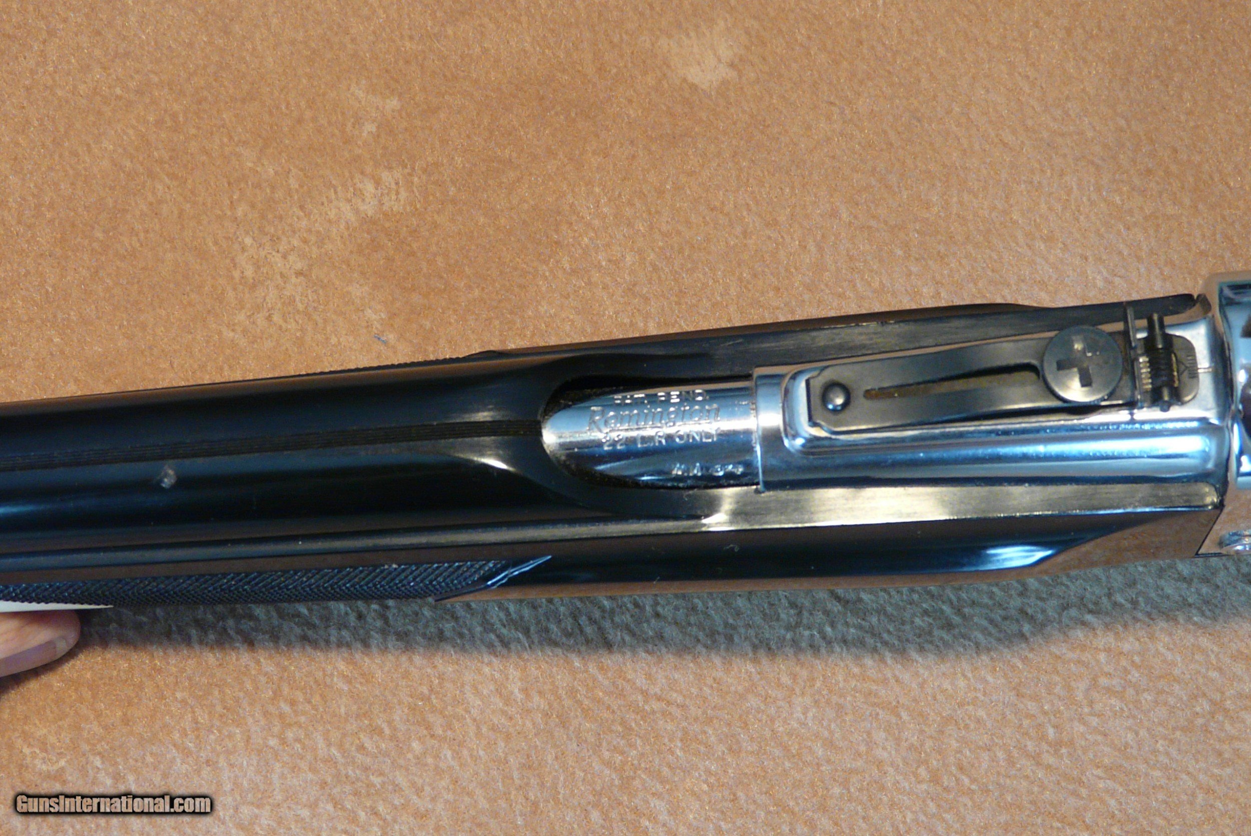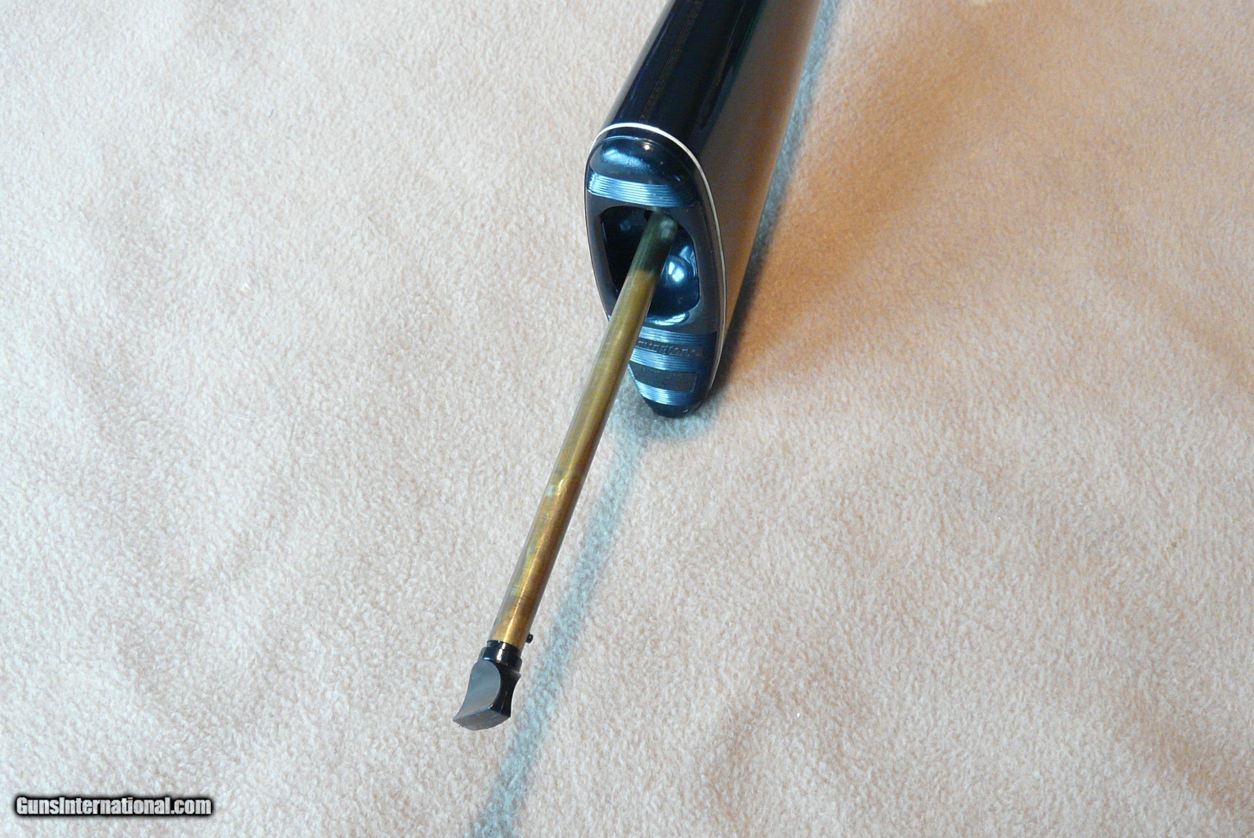 Description: Very hard to find rifle like this, these are so easily scratched or dented, that you just do not see them like this one, very often !! With Chrome receiver & Barrel in near mint condition ! Black plastic stock is likewize! Bore is perfect of course, and it works like the day it was made, shoots only 22 LR ammo, and is very fast acting ! Every 22 rimfire collection should have one of these! SOLD |
