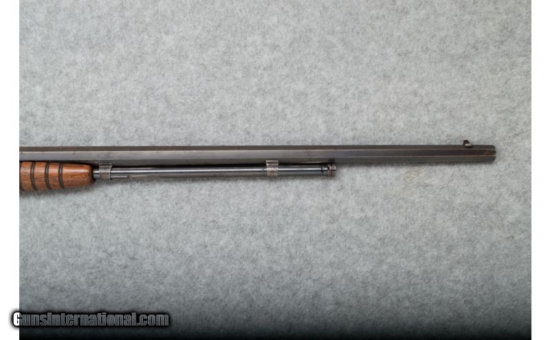 Description: SOLD Caliber Info: 22 Rem. Special Metal Condition: Good overall; some light spotting on barrel Wood Condition: Very good; normal handling marks and finish wear Bore Condition: Fair; some corrosion; rifling still sharp Barrels: 24" - Octagon Triggers: Smooth; blued steel Stock: Smooth walnut pistol grip Stock Dimensions: LOP - 13 1/8 inches Fore End: Grooved walnut Butt Pad: Curved steel butt plate Weight: 5 lbs. 11 oz. Sights: Adjustable rear; bead front Item Location: Sun Prairie, WI |