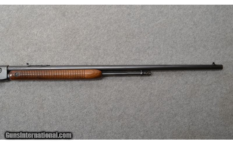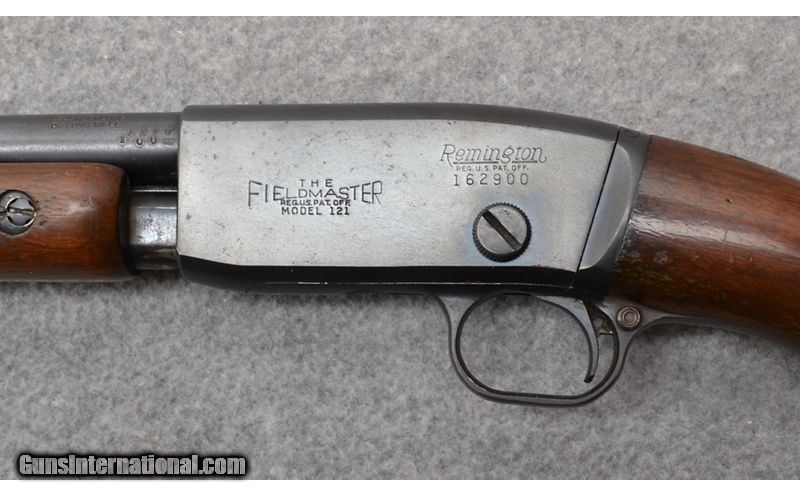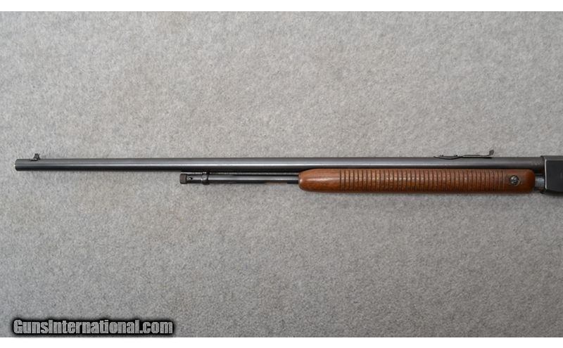 Description: Remington model 121 .22 S, L, LR, 24" round barrel with factory front and rear sight. Rear sight is missing the elevator. The bore is bright with strong rifling. Some powder and copper residue is present. Take down action has some slight blue wear at the edges. Barrel has some blue wear at muzzle end, along with some light nicks and scratches. A few are through the finish. The stock and fore end have dings, dents, and scratches with some being through the finish. .22 Long Rifle SOLD Metal Condition: Action shows some light wear at the edges and some light patina. Barrel shows some blue thinning at the muzzle along with small scratches and dings through the finish. Magazine tube shows blue wear from operation. Wood Condition: "Stock shows varnish wear, dings, dents, and scratches with some through the finish. Fore end has dings, dents, and scratches with some being through the finish. Bore Condition: Bright bore with strong rifling. Barrels: 24" round barrel. Triggers: Smooth trigger. Stock Dimensions: 13 1/2" LOP Butt Pad: Factory metal butt plate. Weight: 5 lb - 14 oz Sights: Factory front blade and rear sight. Item Location: Mitchell, SD |