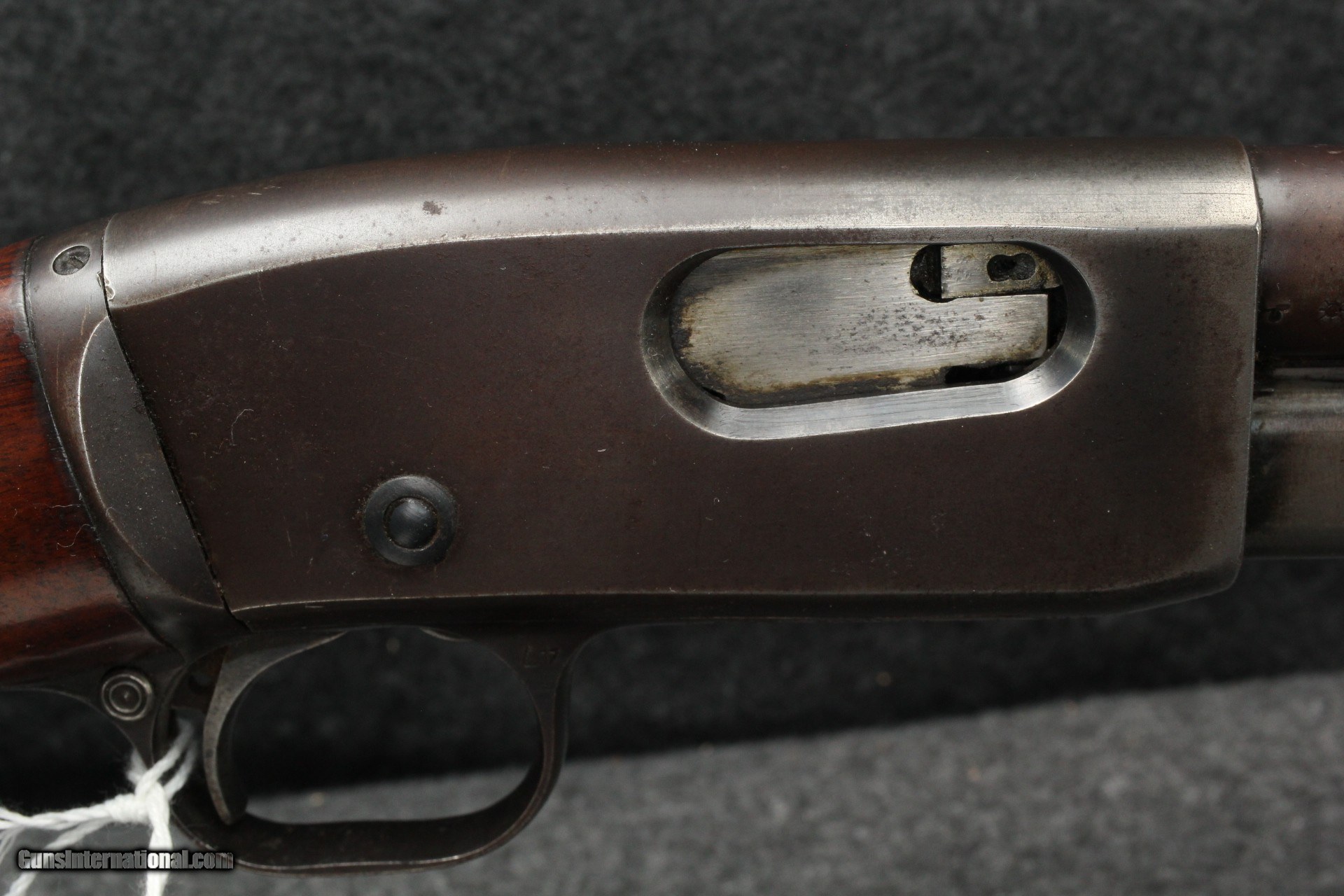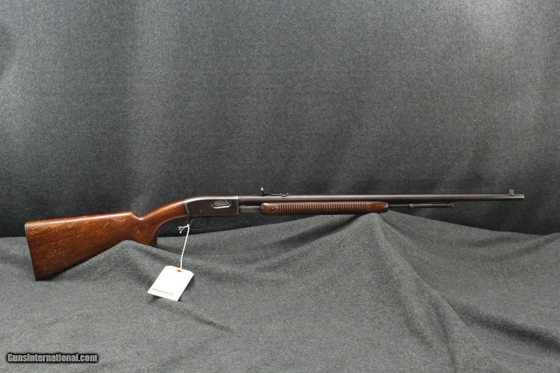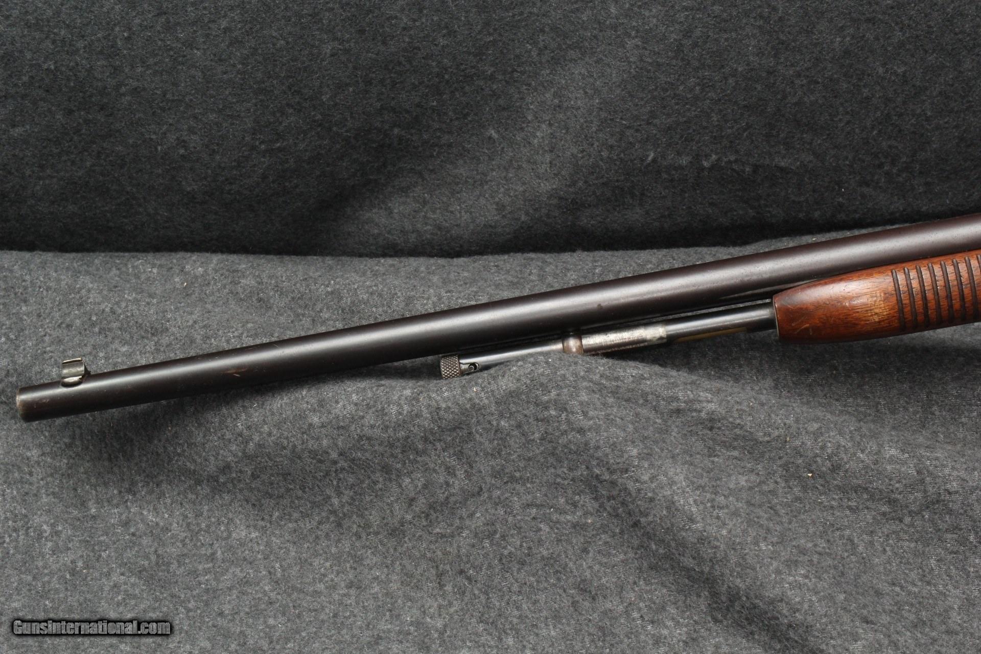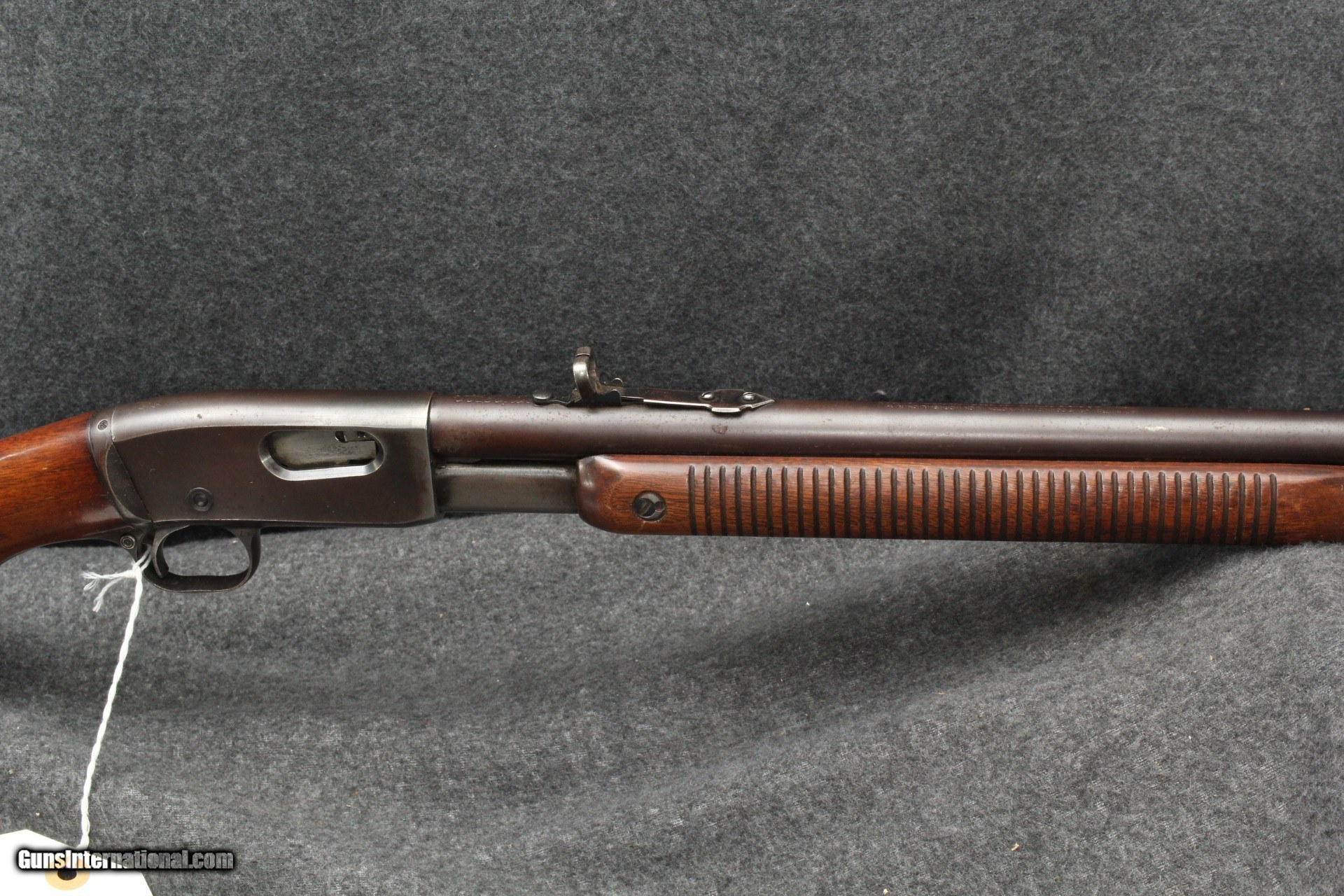Description: 22 WRF or Special (not 22lr or magnum). Serial number 55XX. Appears all original, except rear sight is King's full buckhorn. 24" barrel. Shows high percentage blue turning to plumb with wear marks at normal wear points. Receiver retains 70% plumbed blue with rust frecking throughout. Bore is excellent. Buttstock shows extensive minor marring and moderate finish loss, no cracks or large marrs. Forend shows minor marring, overall hunting wear/use. Excellent mechanical. No wobble in takedown. Will ship to C&R. More photos on request. Please add $45.00 for shipping and insurance. SOLD Curio/Relic: Yes Rifle Caliber: .22 WRF |
