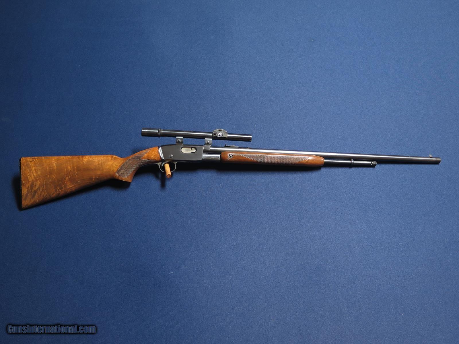 Description: Remington 121 B grade 22 S,L,LR. Factory checkered wood. Ruediger 2.5X German scope. 96-97%. Excellent bore. SOLD |