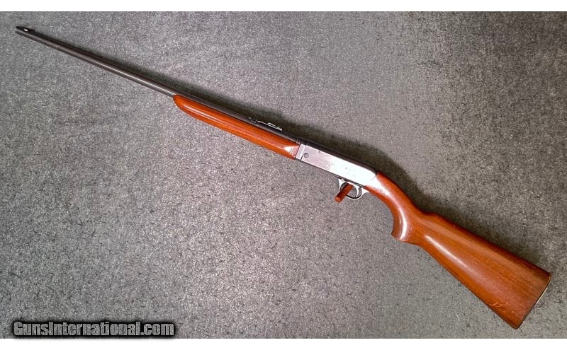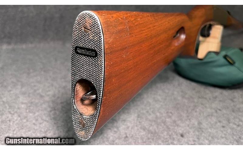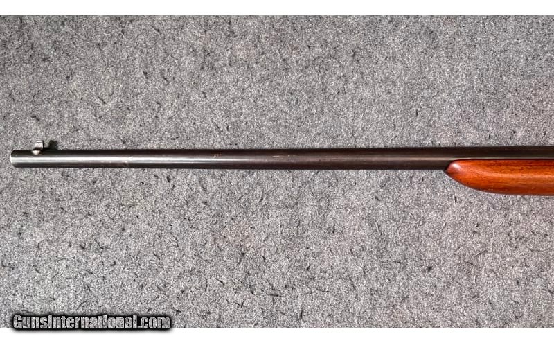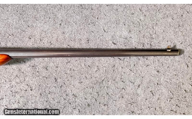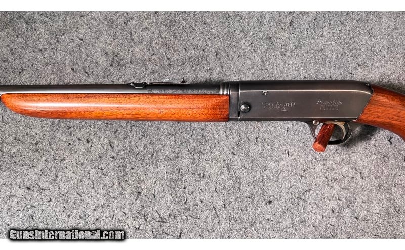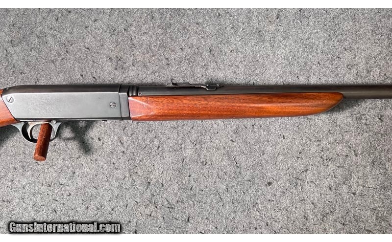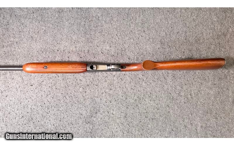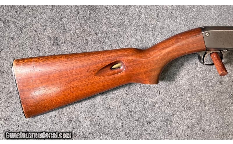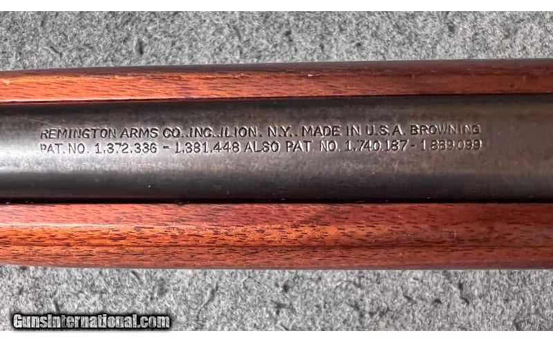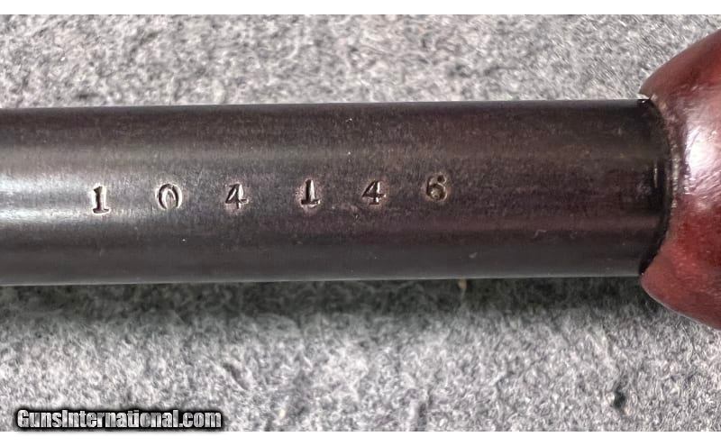 Description: This autoloading rimfire rifle is a Remington Arms Model 241 "The Speedmaster" chambered in .22 Long Rifle. It has a fixed brass bead front sight, an adjustable v-notch rear sight, an original Remington metal butt plate with a tube magazine loading port, and a push-button safety selector switch forward of the trigger guard. The 241 is a John Moses Browning design, and the Browning SA-22, which is still sold, is nearly identical to it. The bluing finish is thin overall, but there are no signs of rust, freckling, or pitting. The wood shows some handling wear, scratches and marks overall, but no cracks are observable. .22 Long Rifle SOLD Metal Condition: "Bluing is thin overall, but no signs of rust or pitting Wood Condition: "Wood shows some handling wear, scratches and marks, but no cracks are observable Bore Condition: "Bore is shiny, with good rifling intact Barrels: 24" round barrel Triggers: Smooth trigger Stock Dimensions: "13½"" LOP, 41¼"" overall length Fore End: Smooth hardwood fore arm Butt Pad: Original Remington metal butt plate Weight: 5 lb 9 oz Sights: "Fixed brass bead front sight, adjustable v-notch rear sight Item Location: Wichita, KS |