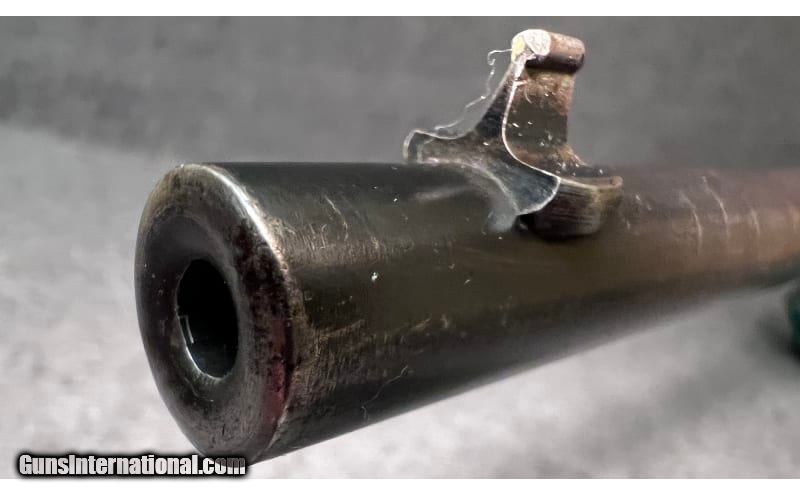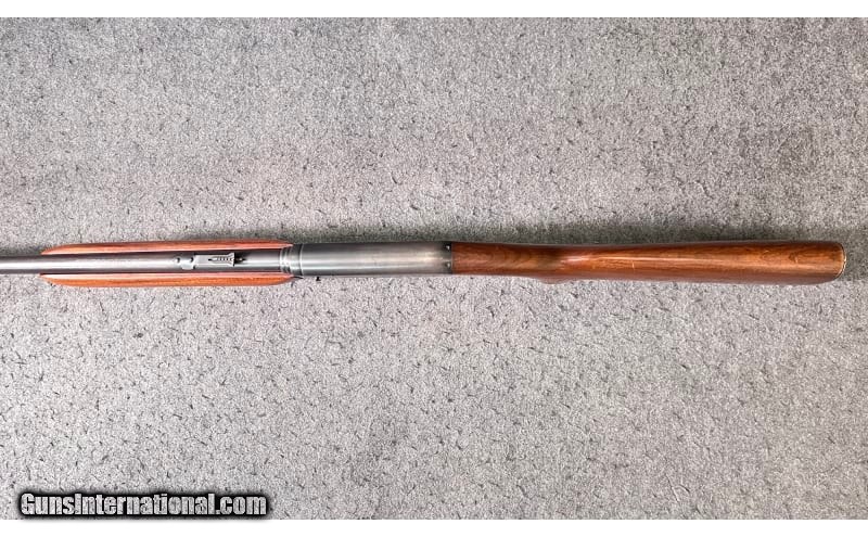 Description: This autoloading rimfire rifle is a Remington Arms Model 241 "The Speedmaster" chambered in .22 Long Rifle. It has a fixed brass bead front sight, an adjustable v-notch rear sight, an original Remington metal butt plate with a tube magazine loading port, and a push-button safety selector switch forward of the trigger guard. The 241 is a John Moses Browning design, and the Browning SA-22, which is still sold, is nearly identical to it. The bluing finish is thin overall, but there are no signs of rust, freckling, or pitting. The wood shows some handling wear, scratches and marks overall, but no cracks are observable. .22 Long Rifle SOLD Metal Condition: "Bluing is thin overall, but no signs of rust or pitting Wood Condition: "Wood shows some handling wear, scratches and marks, but no cracks are observable Bore Condition: "Bore is shiny, with good rifling intact Barrels: 24" round barrel Triggers: Smooth trigger Stock Dimensions: "13½"" LOP, 41¼"" overall length Fore End: Smooth hardwood fore arm Butt Pad: Original Remington metal butt plate Weight: 5 lb 9 oz Sights: "Fixed brass bead front sight, adjustable v-notch rear sight Item Location: Columbus, OH |