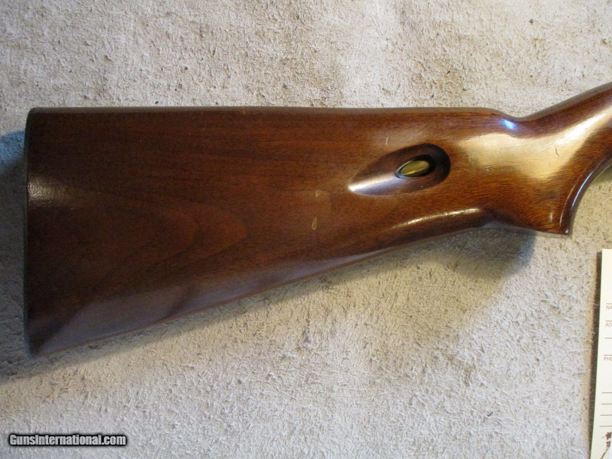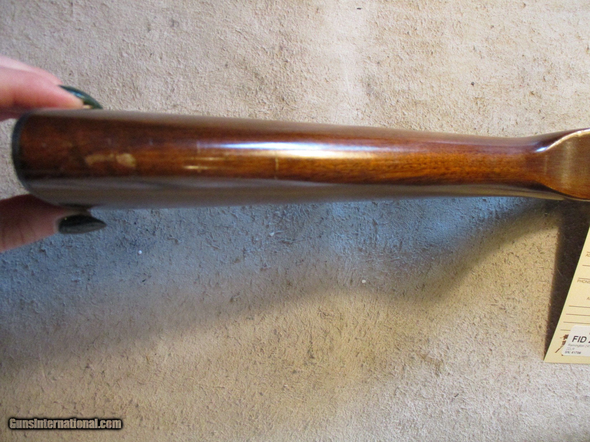Description: Remington 241 Speedmaster, 22LR, 24" barrel. SN is 617xx. Factory finsih on both wood and metal. good bore, good working order. Nice clean classic rifle. We will trade for silver and gold. We accept personal check, any certified funds, Venmo or Zelle. We can also take your credit card, +3%. Email me if you would like these pictures sent to you, they will come through bigger and better than on the listing page here. We do offer Layaway. Our standard terms are 25% down, 90 days. Initial deposit is not refundable. Email me with any questions. Please check your local laws to confirm it is legal to own in your state! Buyer pays $60 shipping and insurance in a brand new PLANO hard case to your FFL in the lower 48. AK, HI or PR is extra. I will ship to California, as long as it is legal, NO PROBLEM! All my guns come with a non-firing, 3 day unconditional return privilege, from the day UPS delivers to your dealer. Buyer pays shipping both ways if the gun comes back. Please make sure to make it to your FFL to inspect within the 3 days. I am a licensed FFL, and will include a copy of my FFL with the gun for your dealer’s records. I will ship to a C&R if the gun is eligible. I will ship to California, but you need to confirm the gun is legal where you are, California or other. WE BUY AND CONSIGN GUNS AND GUN COLLECTIONS! We will travel to pick up collections! I am always looking for good clean, old original Winchesters to buy, consign, or trade, especially Pre '64's model 70's and model 54's. WE ALSO TRADE FOR CLASSIC CARS AND TRUCKS! We also trade for gold and silver. SOLD Rifle Caliber: .22 Long Rifle Manufacturer: Remington Model: 241 Barrel Length: 24 Condition: Used |
