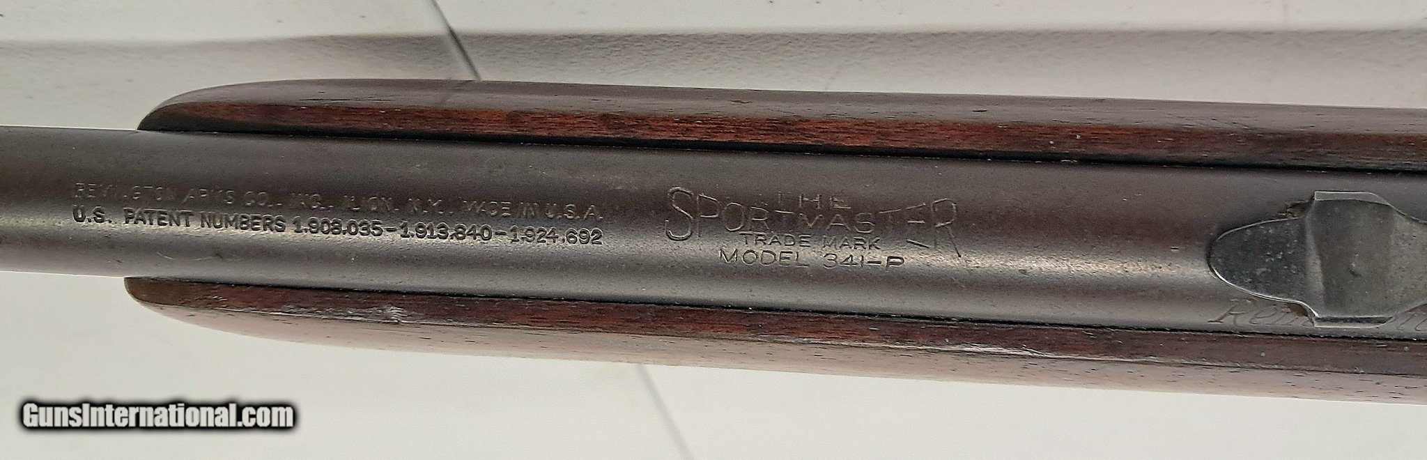 Description: Guns Listing ID: 491730 This 1936 (barrel date stamp is CE) Remington 341-P rifle is in good condition. SOLD Manufacturer: REMINGTON Model: 341-P Caliber Info: .22 LR Condition: Used - Non-Certified Barrels: 23 BARREL Finish: black /w wood stock |