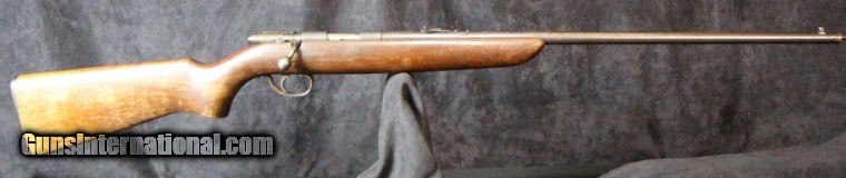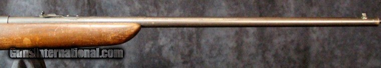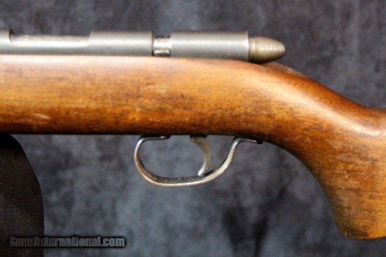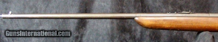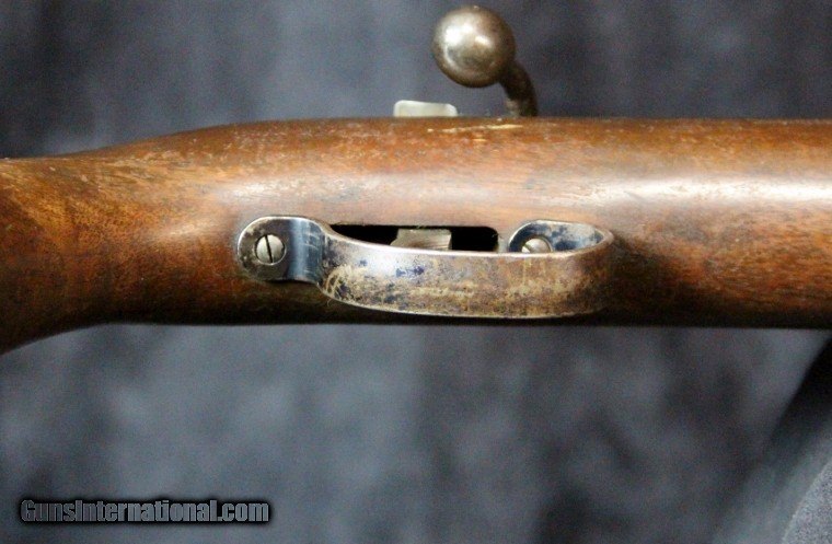 Description: .22rf, s/l/lr, NVSN, 24 inch barrel, blue fiish, walnut stock, bright bolt, original sights. Condition: very good bright bore, 95% barrel blue with some speckling, wood is solid, finish wearing on both sides of stock, chipped butt plate, mechanically very good, excellent marks. SOLD Curio/Relic: Yes |