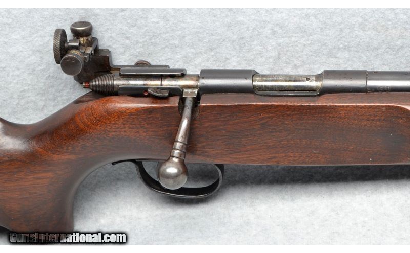 Description: Nice older target .22. SOLD Manufacturer: BRR barrel code (1946) Caliber Info: .22 LR Metal Condition: Very good. Some bluing loss and specking (mostly on trigger guard and magazine plate). Wood Condition: Very good. A bit dull in places and a few dings. Bore Condition: Bright with sharp rifling Barrels: 27 Stock Dimensions: LOP = 13 3/4 Butt Pad: Steel Weight: 8.2 lbs. Sights: Redfield receiver (rear) and globe (front) sights. Square post insert in front sight.. Item Location: Cheektowaga, NY |