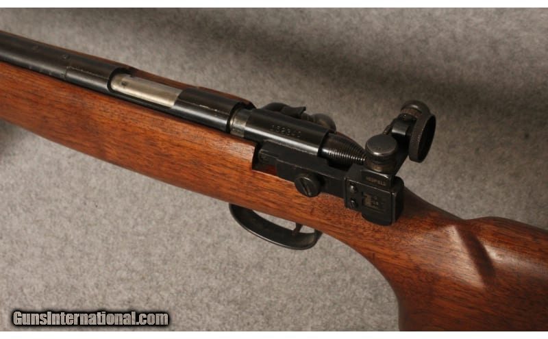 Description: The Remington Model 513-T Matchmaster is a bolt action rifle that is chambered in .22 Long Rifle. This rifle is designed for target shooting, evident by its heavy barrel and Redfield 75 rear sight. It is in overall good condition with no major signs of wear. .22 Long Rifle SOLD Metal Condition: Good Wood Condition: Excellent Bore Condition: Bright Barrels: 22.5 Stock Dimensions: 13 1/2 Fore End: Smooth Butt Pad: Plastic Weight: 9lbs Sights: Adjustable Rear Redfield Sight/Protected Front Sight Item Location: Tualatin, OR |